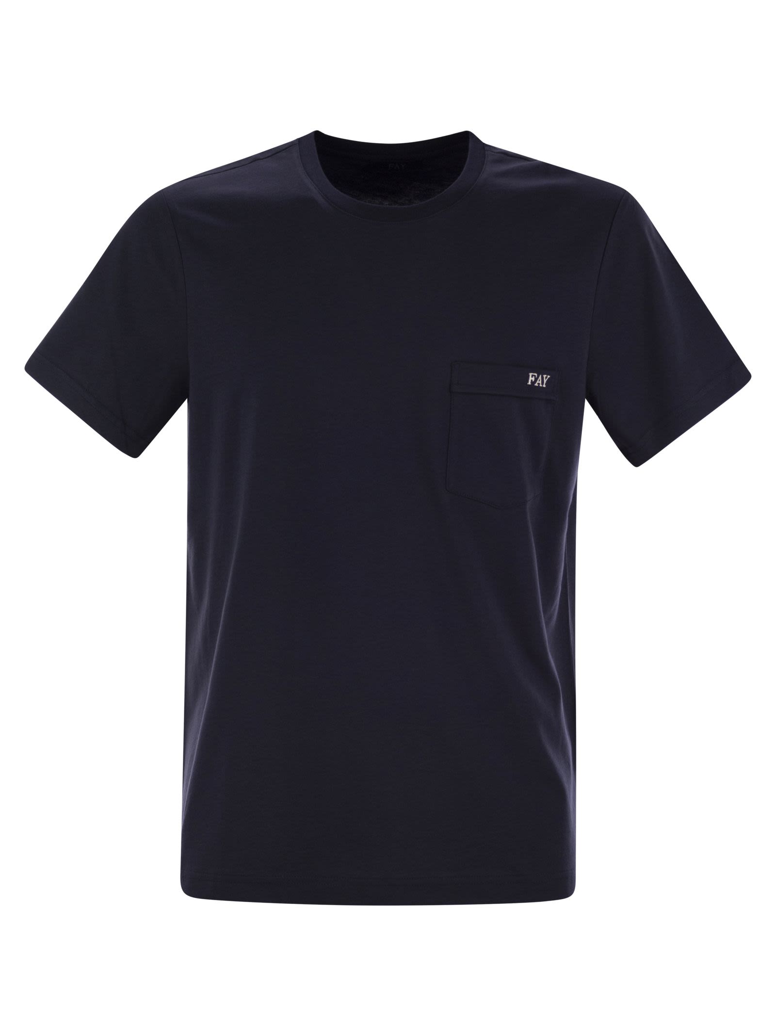 Short-sleeved crew-neck T-shirt made of cotton jersey. A casual garment enriched by the breast pocket and Fay logo. - Chest pocket - Short sleeves - Crew-neck DESIGNER ID: NPMB3501280UCXU806