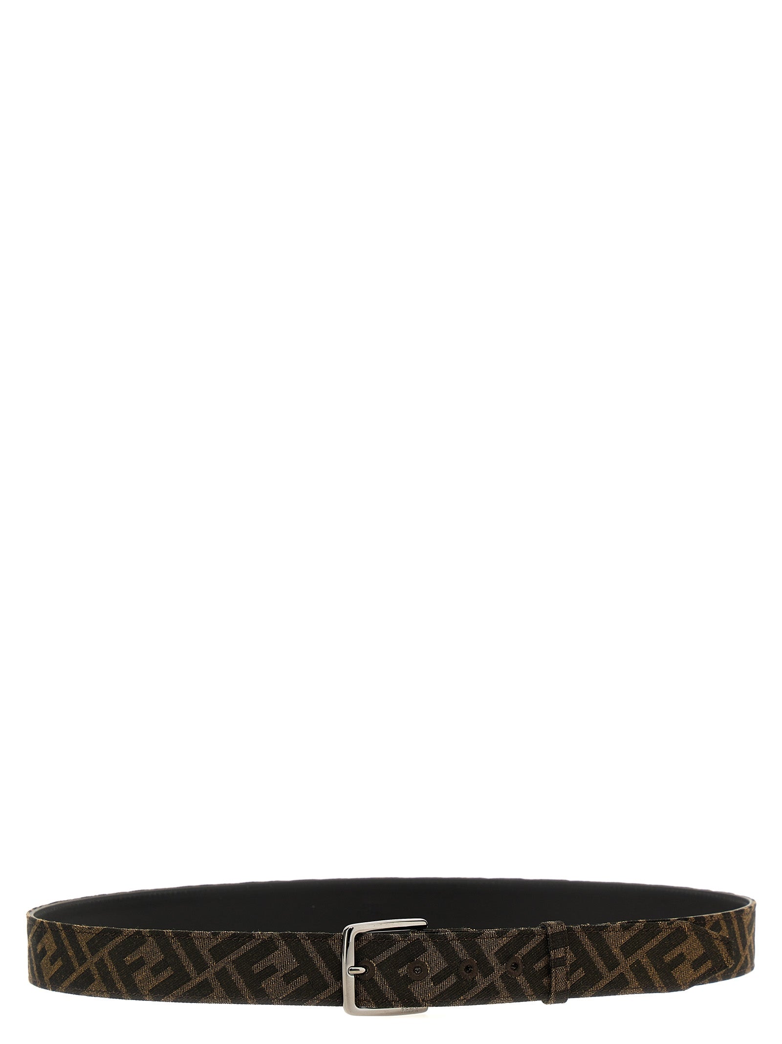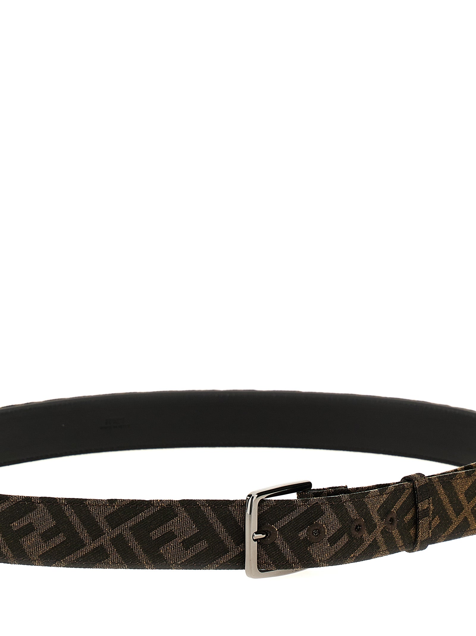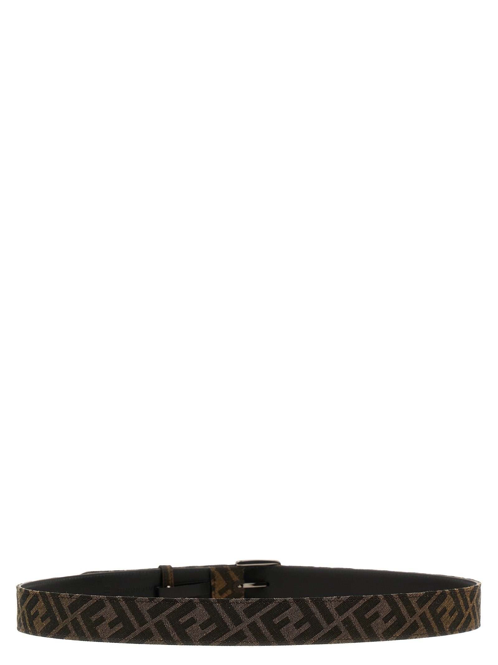 'FF' Gürtel aus Stoff mit FF Jacquard -Muster, Silbermetallschnalle.