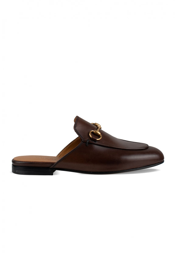 Gucci -Hausschuhe, Princetown -Modell in braunem Leder.