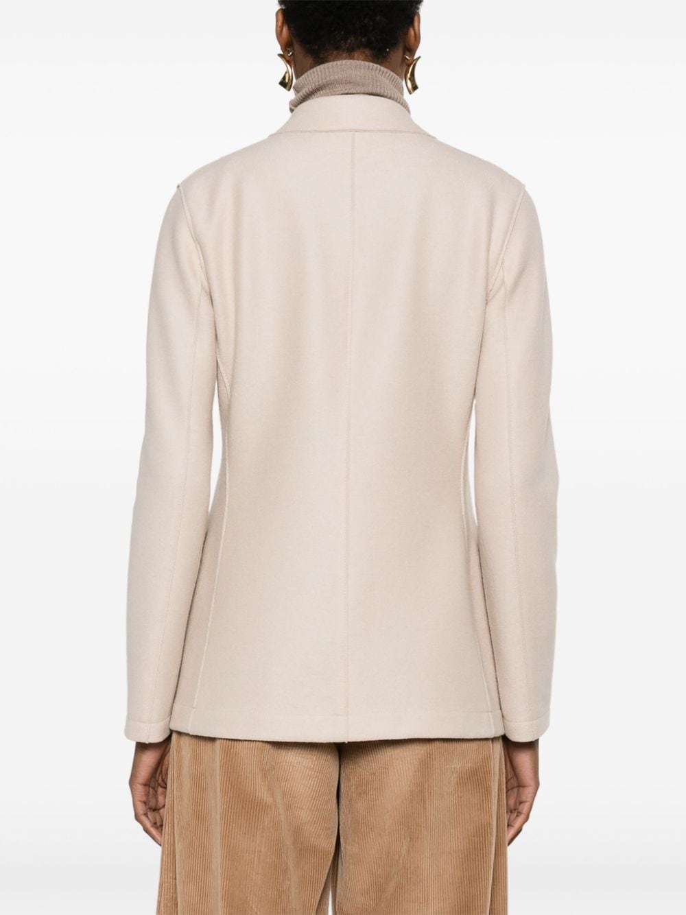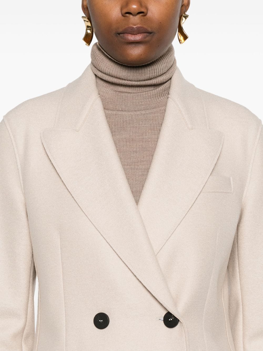 light beige virgin wool non-brushed fleece double-breasted button fastening peak lapels long sleeves chest welt pocket dart detailing two front flap pockets Italian rear vents unlined straight hem We've partnered with Good On You — an independent agency that rates how brands perform in relation to their impact on the planet, people and animals, with a multi-criteria rating simplified to a five points scale. In order to be awarded our conscious label, larger brands need to score a minimum of four out of five ('Good'), while smaller brands must score at least three out of five ('It's A Start'). This item comes from a brand rated three out of five ('It's A Start') by Good on You at the time it was added on Balardi. Please note, this is a brand-level rating and does not guarantee that this product is made with conscious materials. Learn more about what makes a product Conscious on our Conscious Criteria page