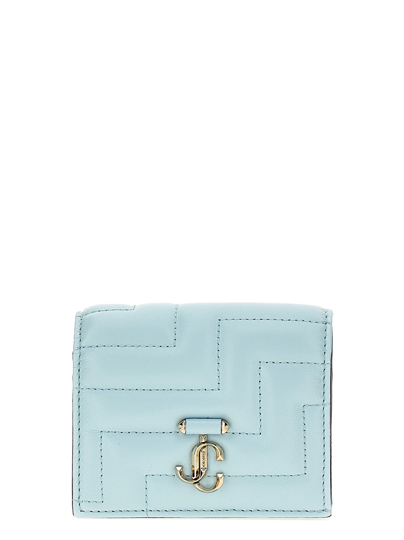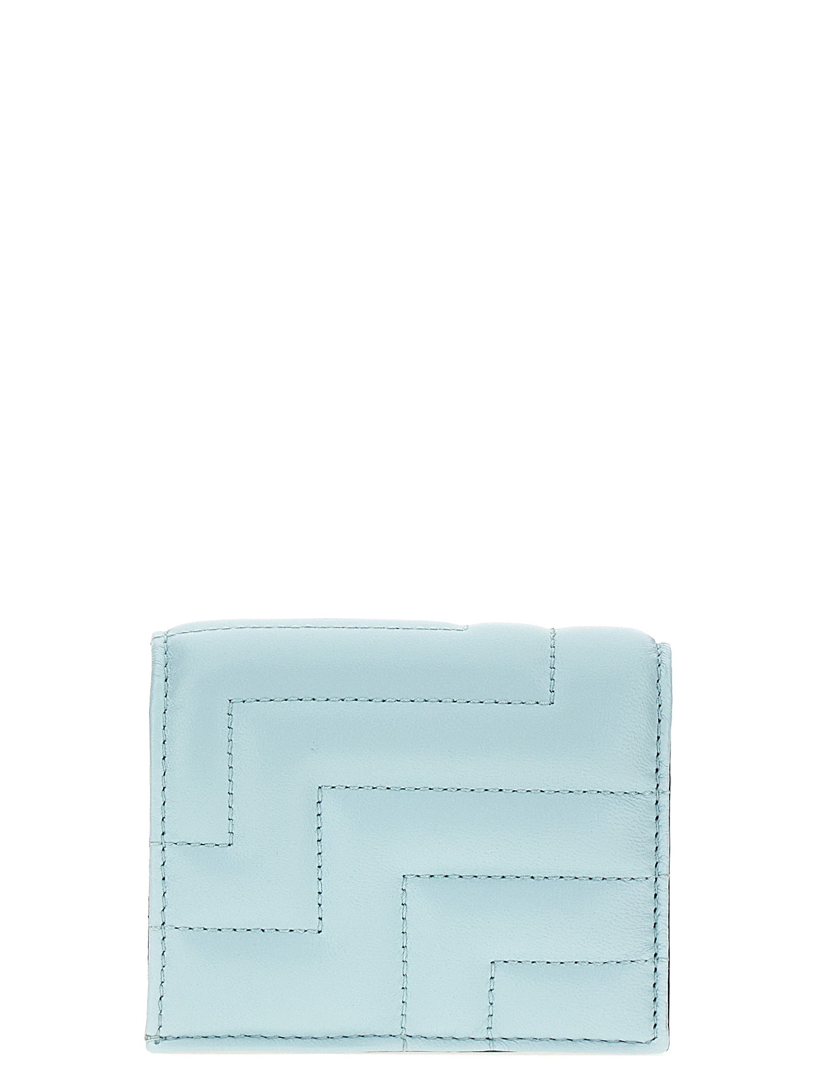 'Hanne' Brieftasche in gestepptem Leder mit vorderem Metall -Logo -Appliké, Knopfverschluss.