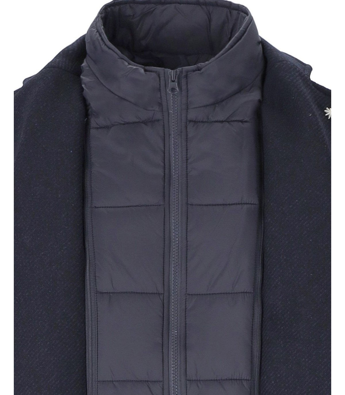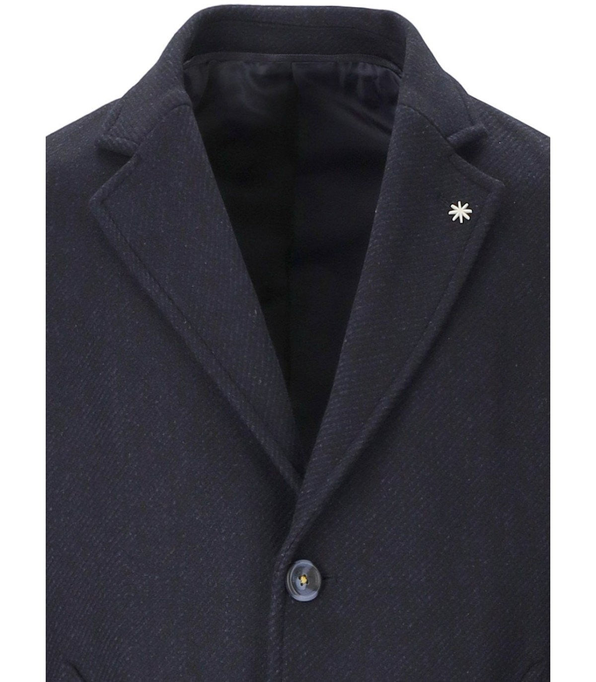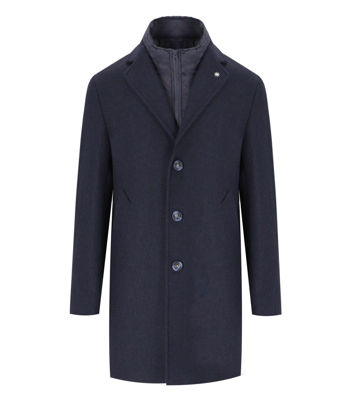 Manuel Ritz Mantel aus einer blauen Wollmischung. Unverriert, verfügt es über einen Schluss von drei Knöpfen. Es hat zwei Taschen vorne. Kerlkragen. Mit Nähten fertig. Regelmäßige Passform. Zusammensetzung: 80% Wolle / 20% Polyamid.
