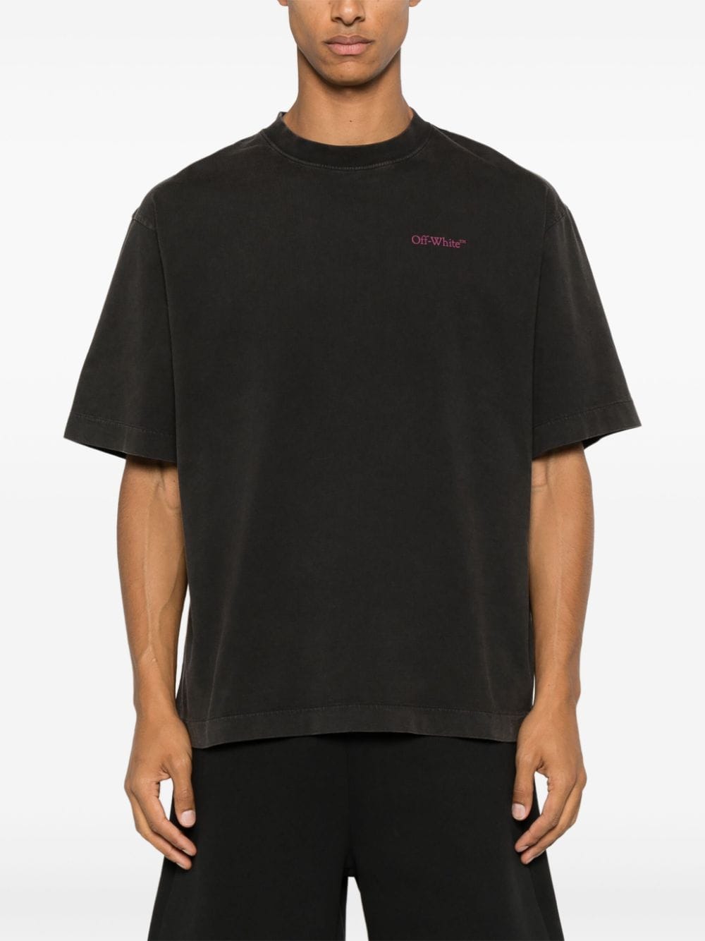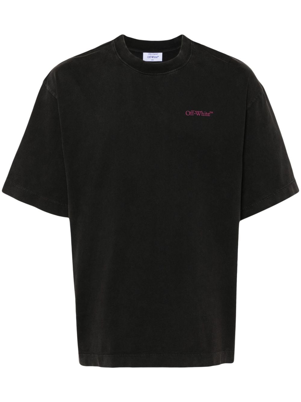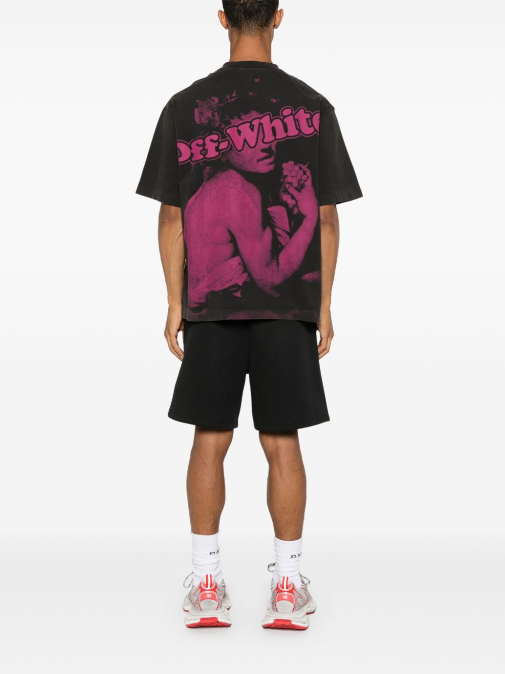 black/dark pink cotton jersey texture logo print at the chest crew neck drop shoulder short sleeves short side slits logo print to the back bacchus print to the back straight hem