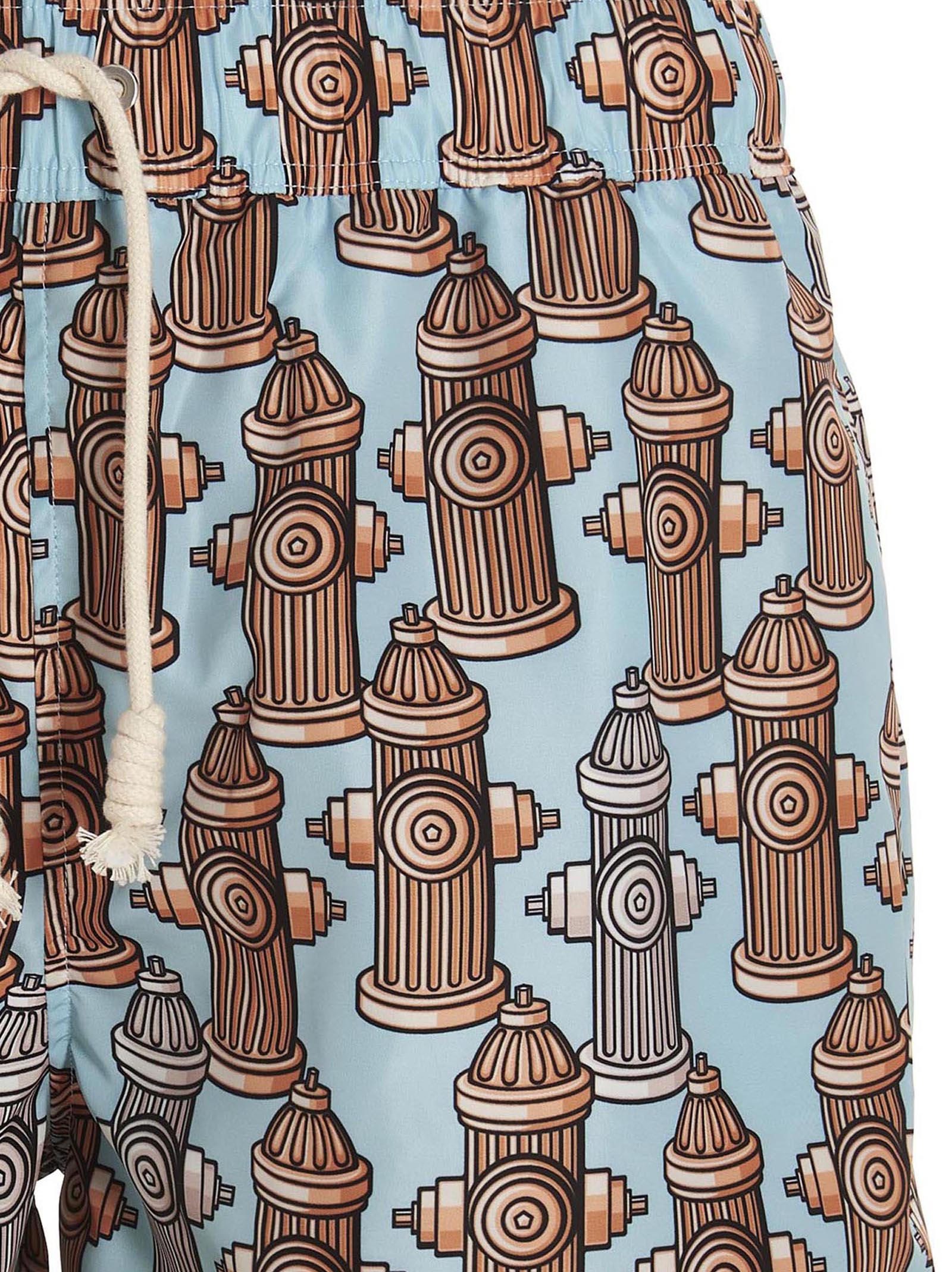 "Fire Hydrant" Schwimmshorts im technischen Stoff mit All-Over-Druck, Draw-String-Elastik-Bund, Taschen, innere Mesh-Briefs.R Mesh Slips.
