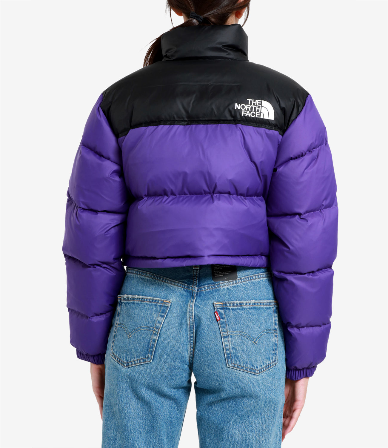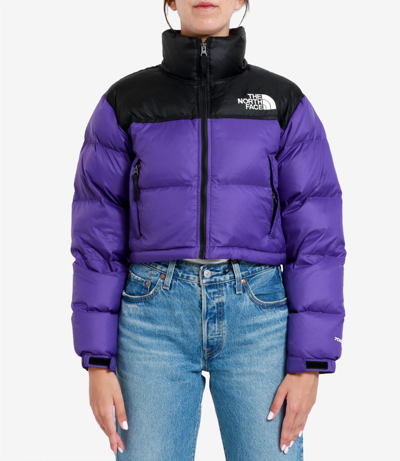 - Glossy ripstop fabric - Recycled fabric inserts - Short pattern - Squared designe - Down filling - High collar with fold-down hood inside - Zipper front closure - Zippered pockets - Long sleeves with Velcro cuffs - Embroidered logo on front and back back - Regular fit