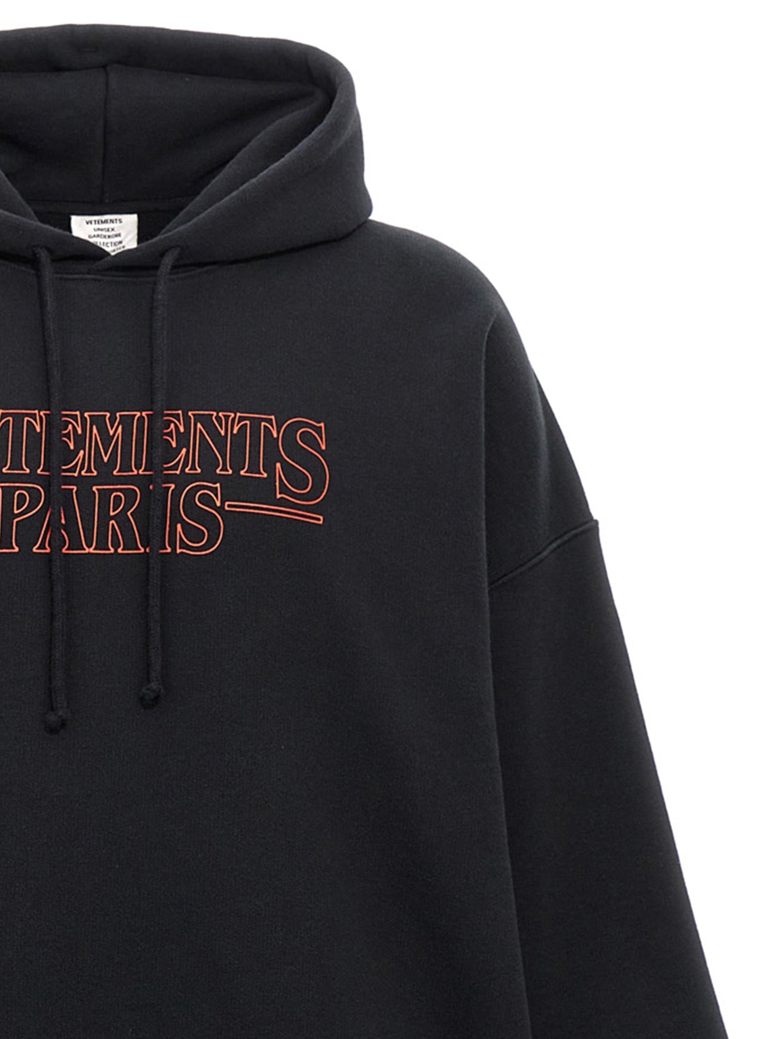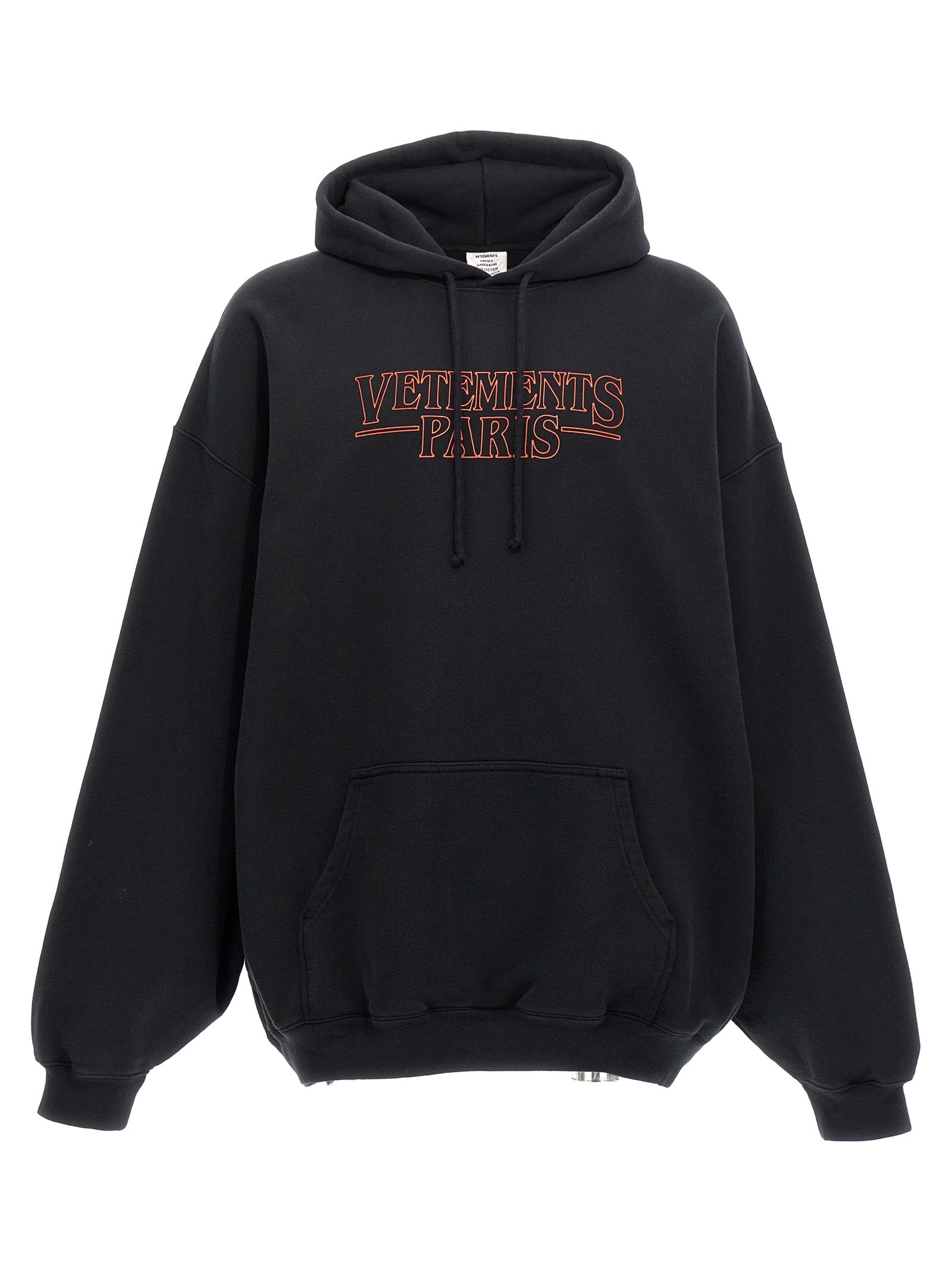 "Vetements Paris Logo" Cotton Blend Hoodie mit vorderem Logo -Druck, Känguru -Tasche, lange Manschettenärmel.