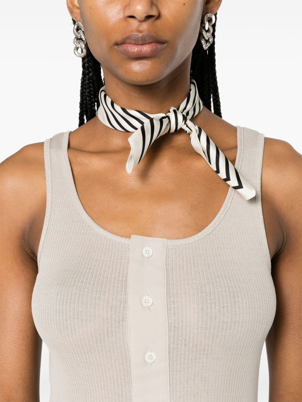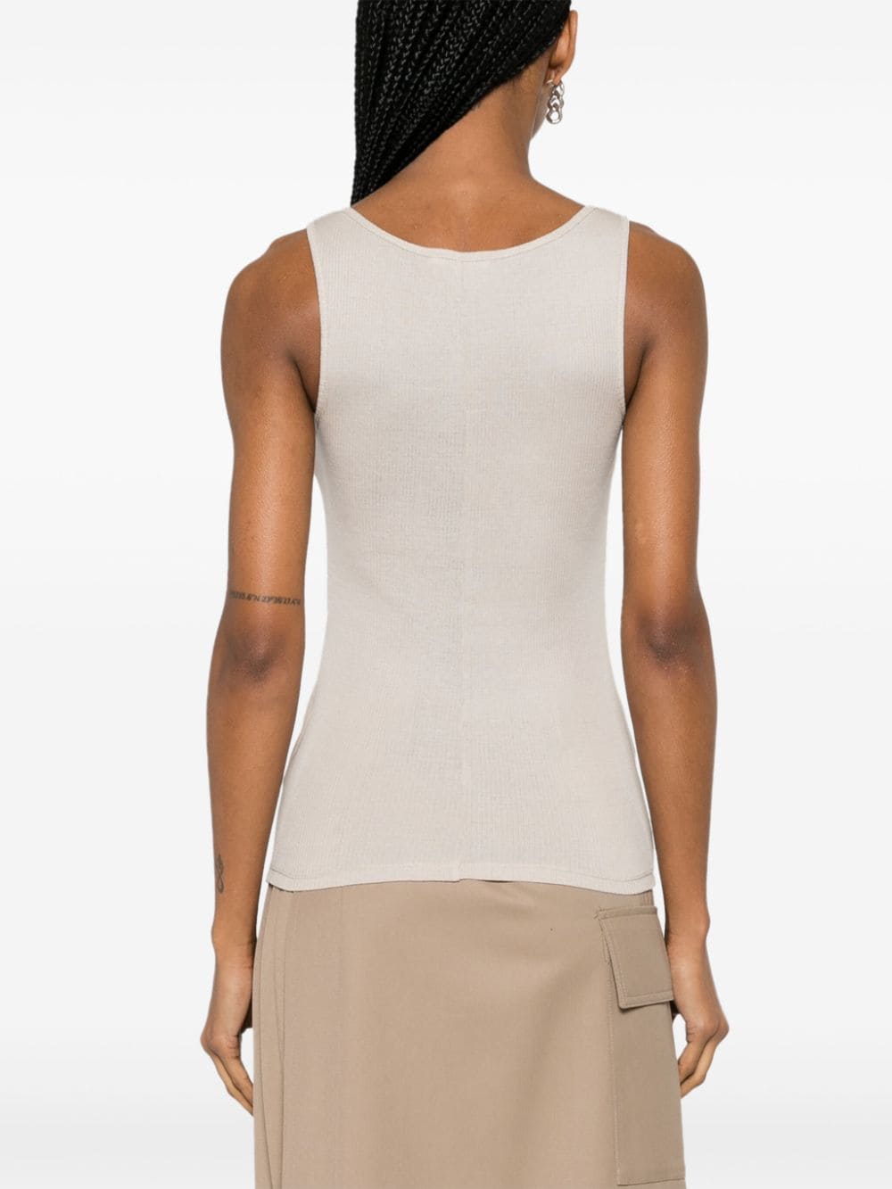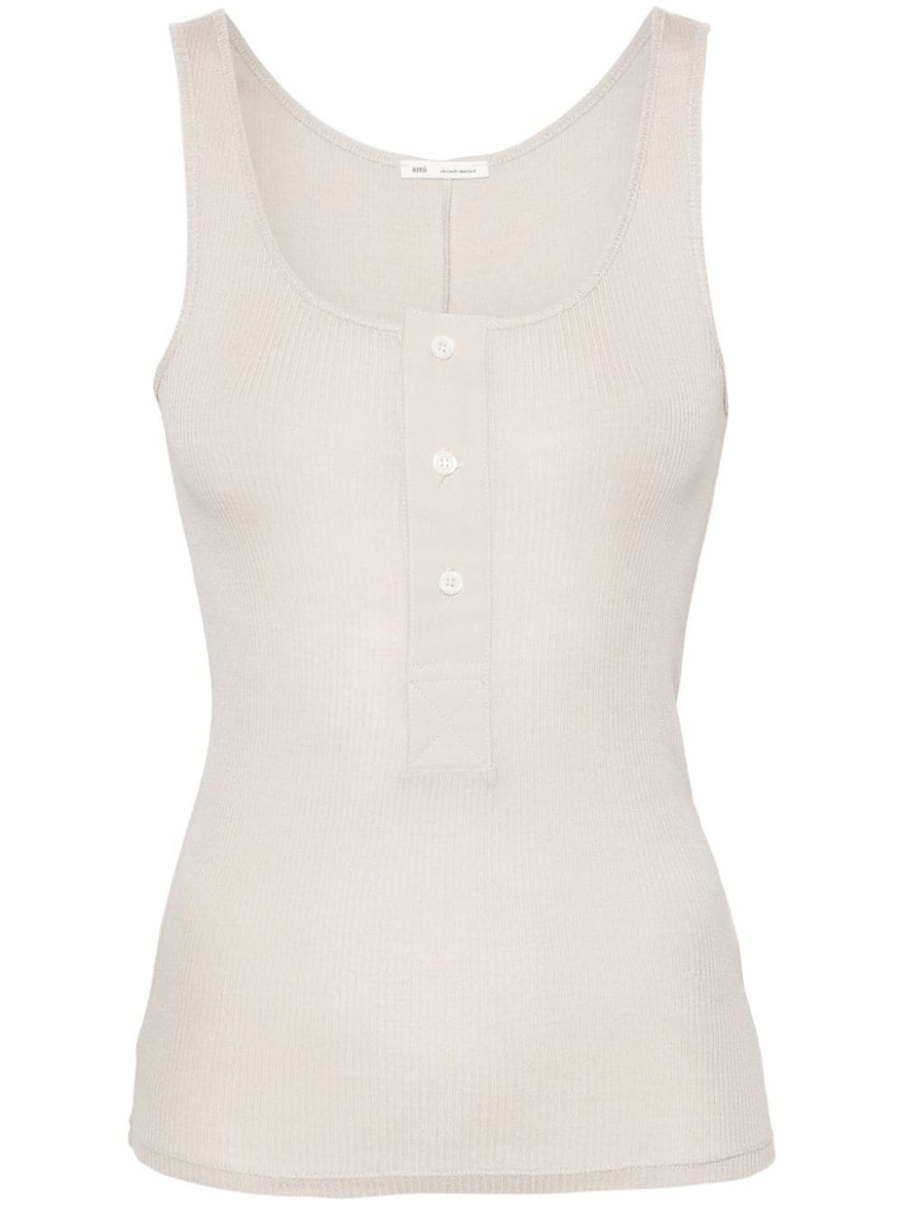 Ecru Baumwolle fein gerippte runde Hals ärmelloser gerade Saum Vorderknopfklang