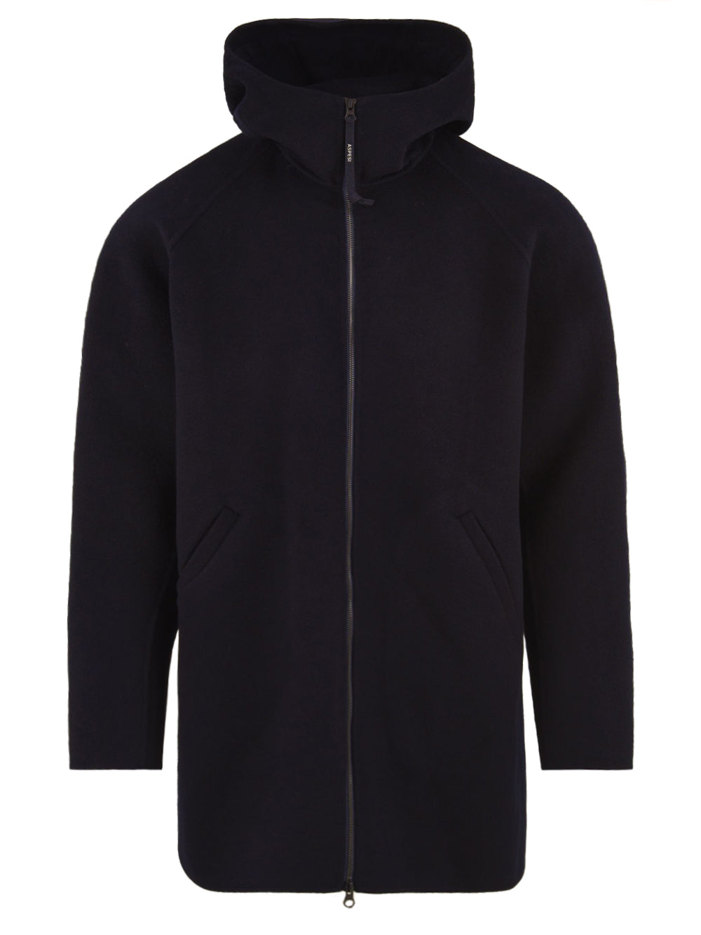 Doppelwolljacke. Reißverschlussschnürung, feste Motorhaube und 2 Kerntaschen Personalisierte Micro-injizierte Aspesi-Logo-Puller. Regelmäßige Passform