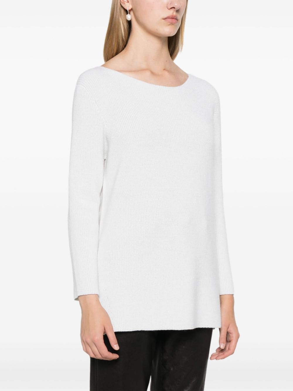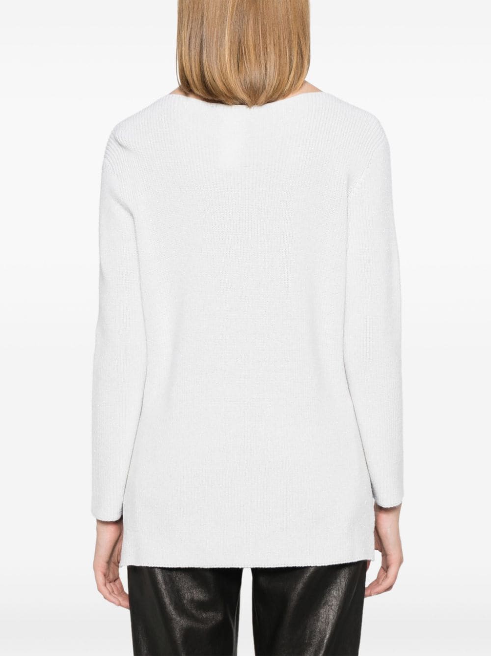 weiß/silberton-tone Virgin Wolle Mischung Metallic Feeding Fisherman 's Strick lurex detaillieren runden Hals Langarmes Seitenschlitze gerade Saum nicht