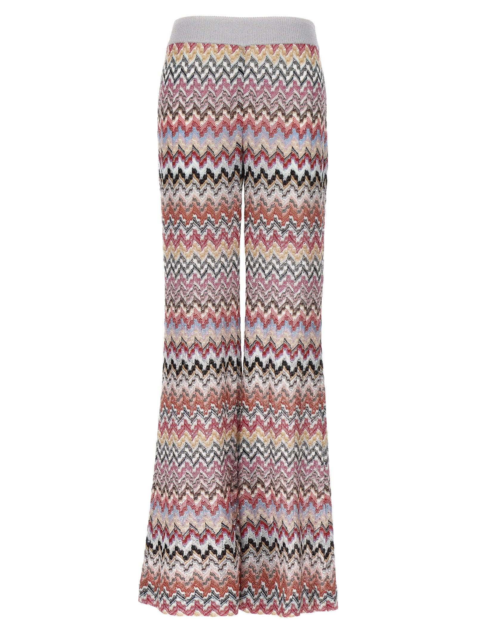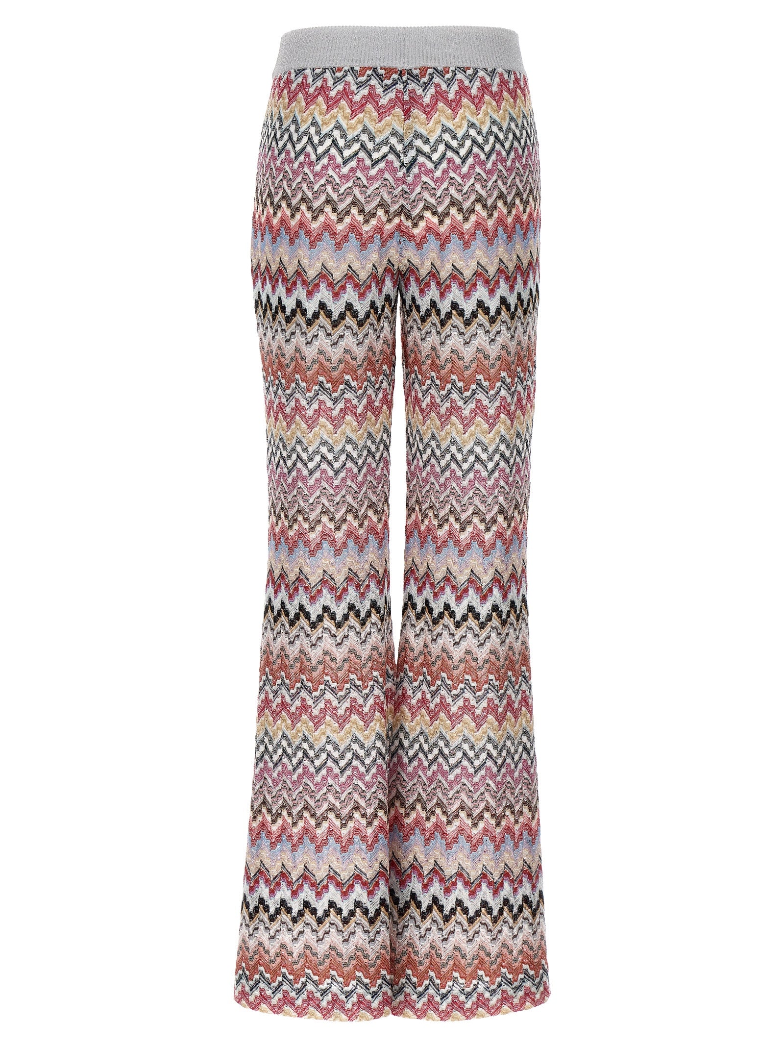 Hose mit Zickzack -Lurex -Muster, elastischer VTA, ausgestattetes Bein am Boden.