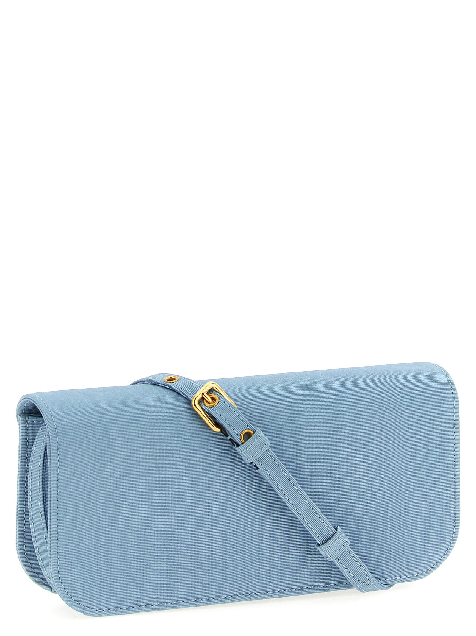 Locò Clutch in Moiré -Stoff, Magnetklappenverschluss mit Vlogo Signature Swarovski® Jewel auf der vorderen, abnehmbaren Ketten -Schultergurt, einstellbarer und abnehmbarer Schultergurt.