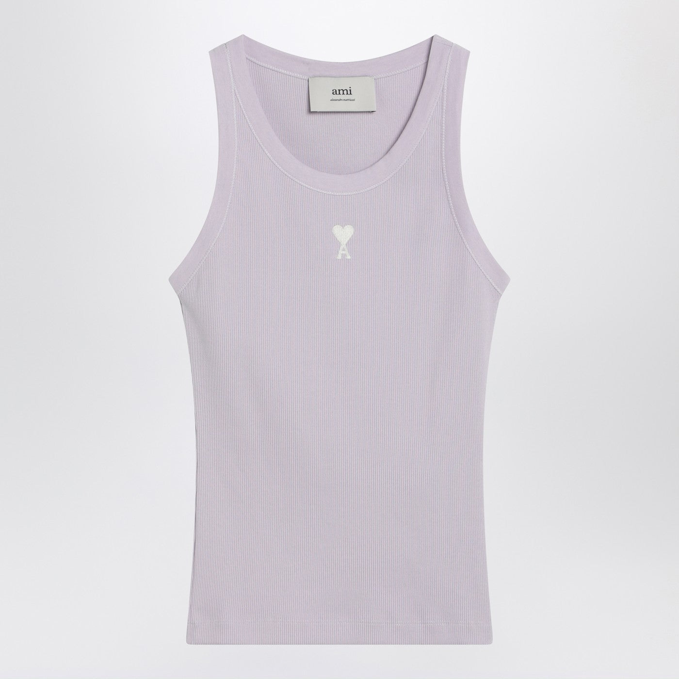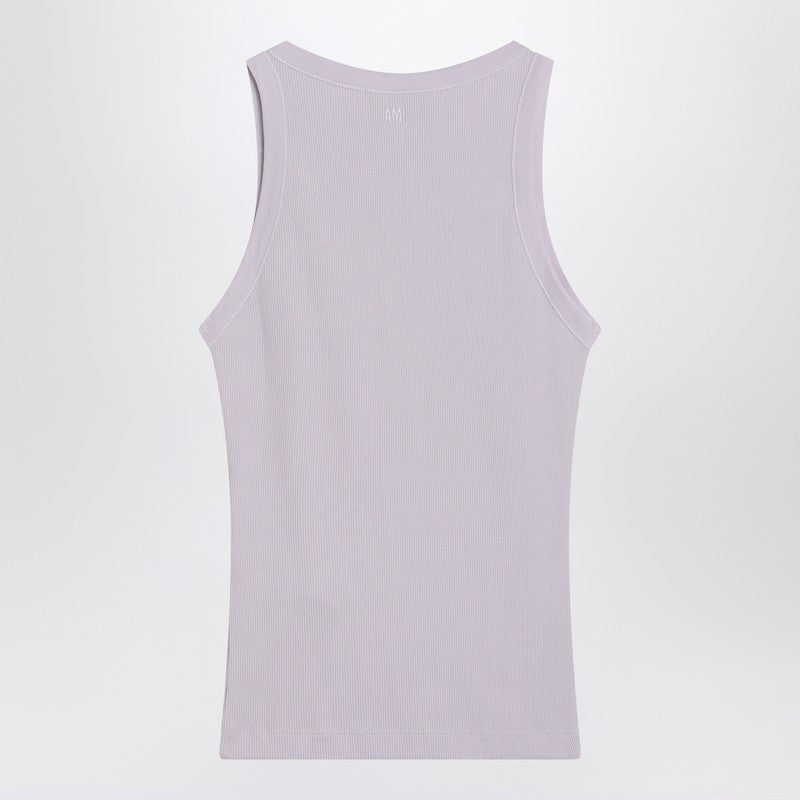 Ami Paris rund-Hals-Tanktop in der lila Bio-Baumwolle, gekennzeichnet durch geripptes Design und kontrastierendes Ami de Coeur-Logo auf der Brust.