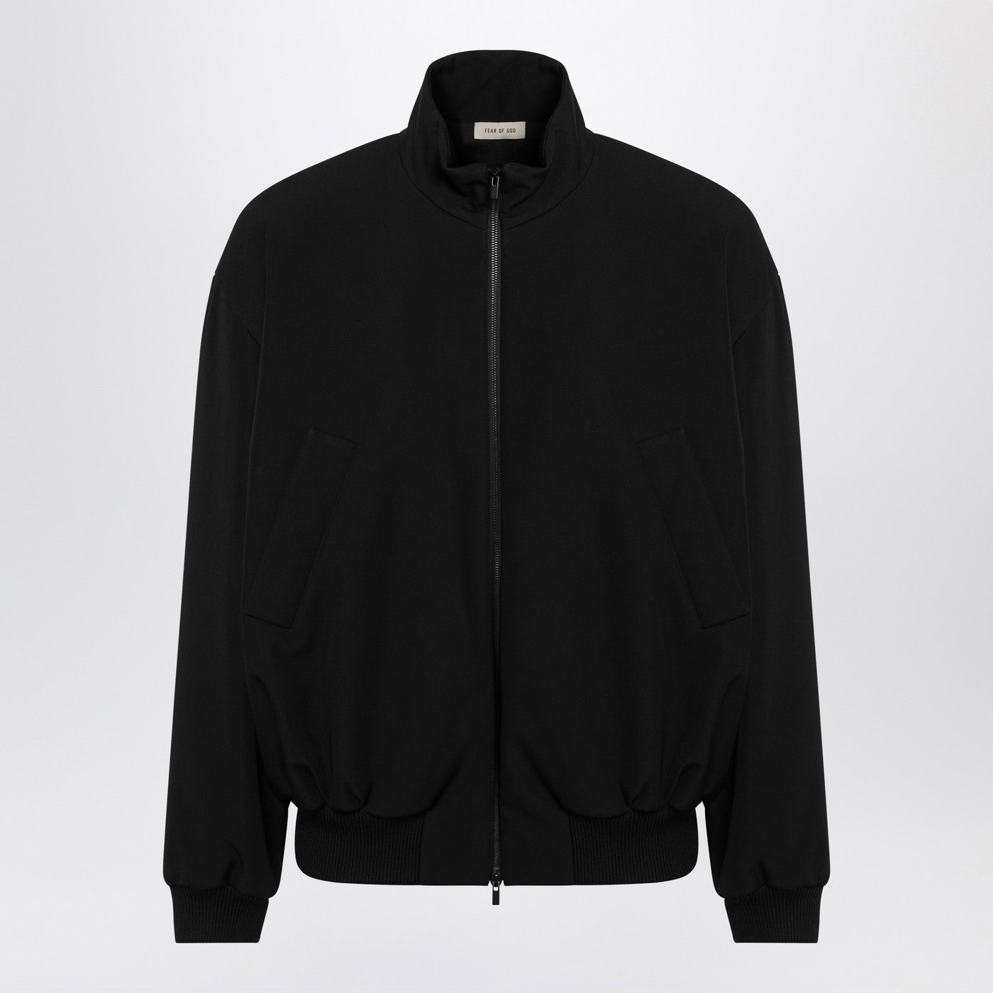 Black Virgin Wolle und Baumwolljacke aus der Angst vor Gott mit einem hohen Kragen, einem Doppelzip-Frontbefestigungen, langen Ärmeln, zwei Seitenstaschen, einem Logo-Patch auf dem Rücken und gerippten Strickkanten.