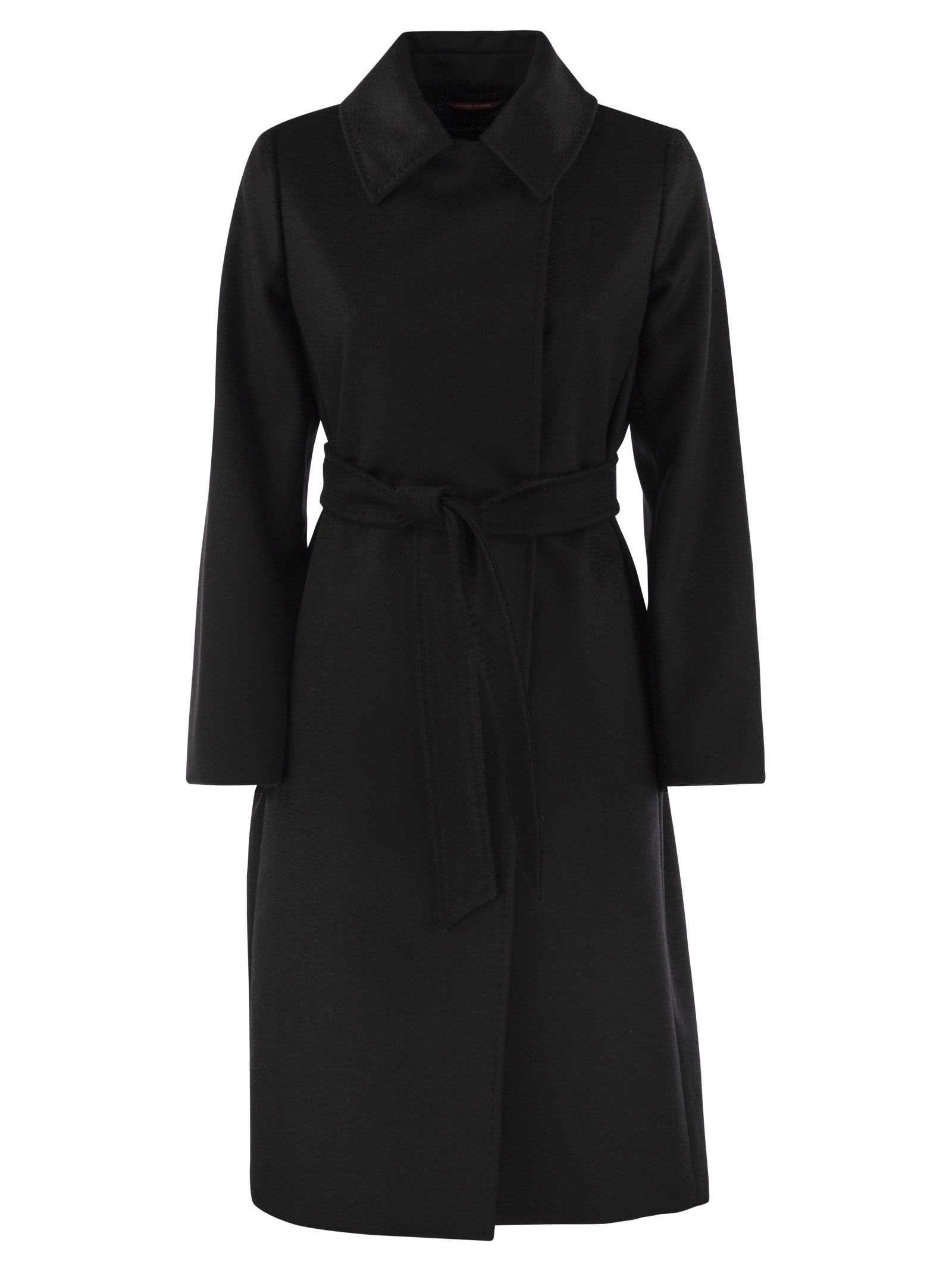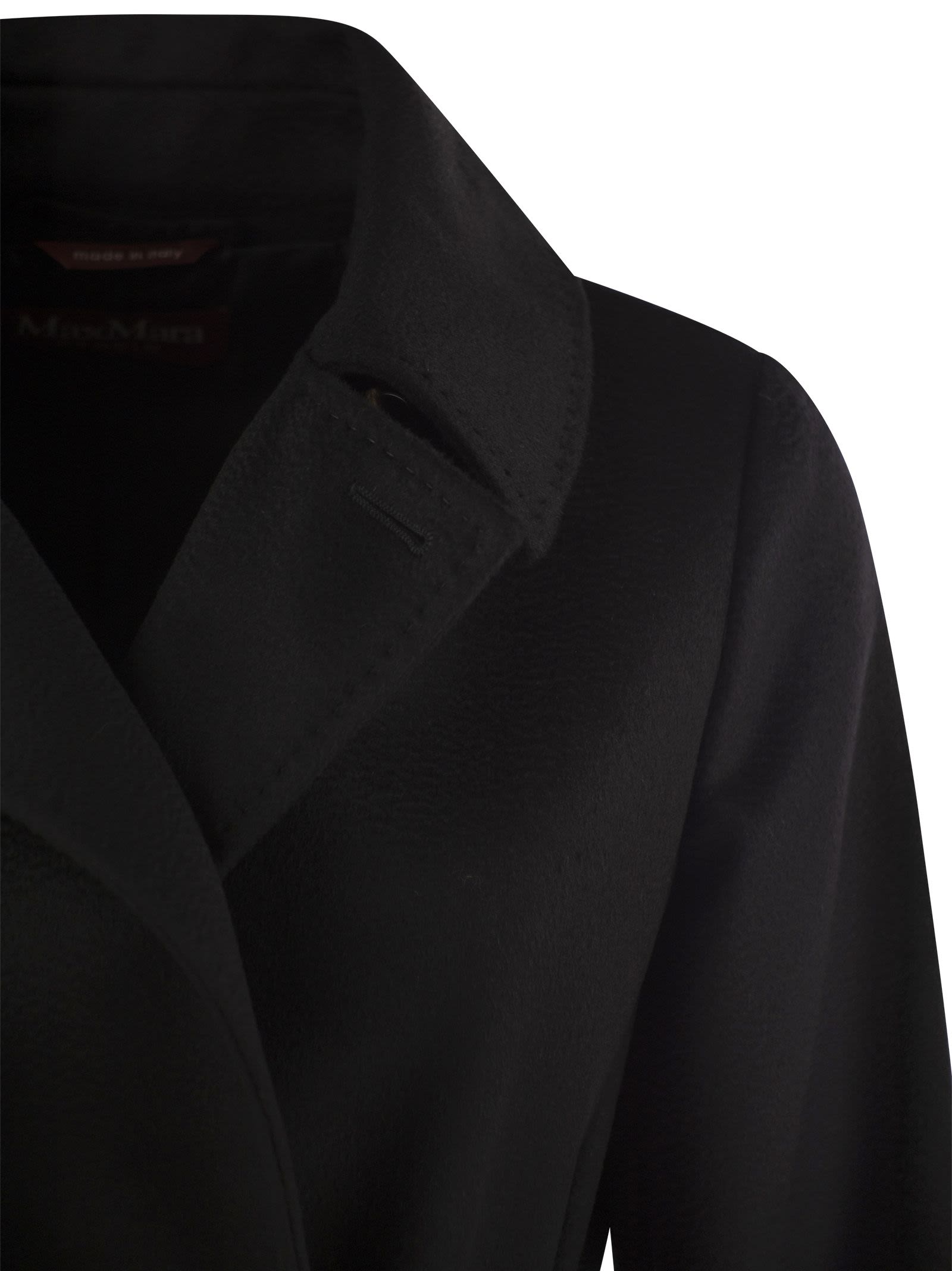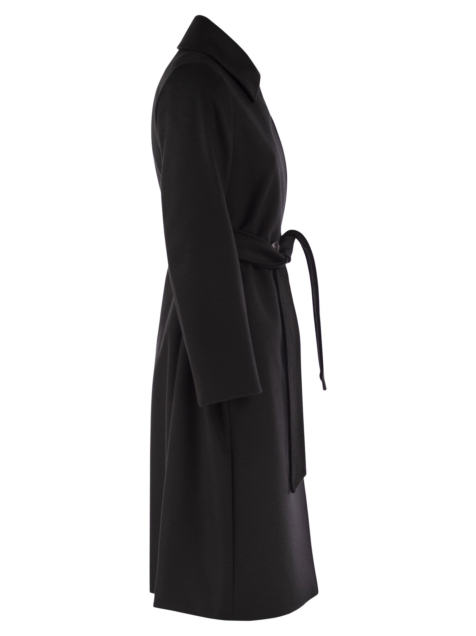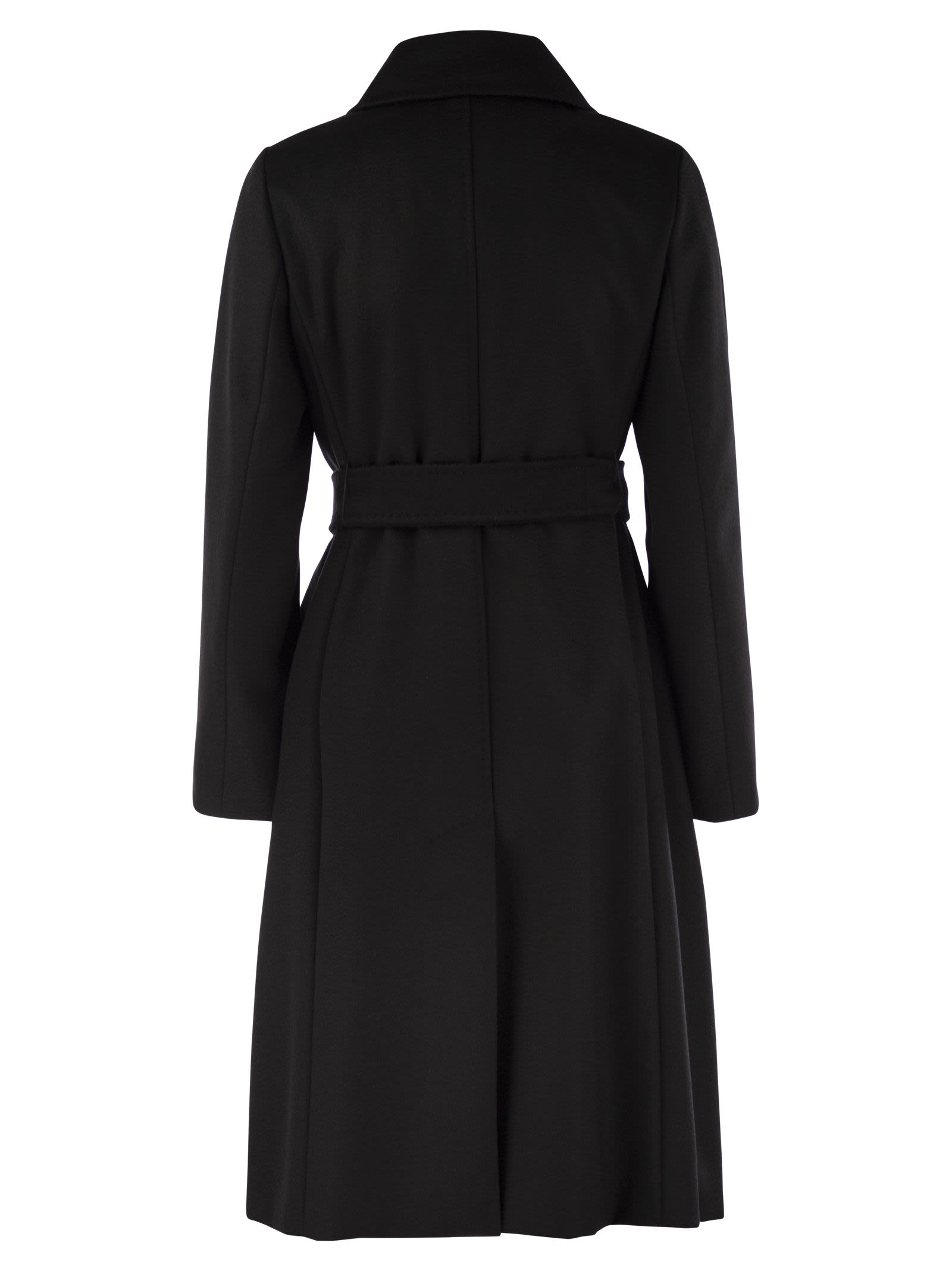Langer Doppelbrustmantel in reinem Wollstoff mit Hemdkragen und Taschen in den Hüften. Angepasste Auskleidung. Versteckte Knopfbefestigung und passenden Gürtel. - Regelmäßige Passform - Matching Belt Designer ID: 2426016101600 013
