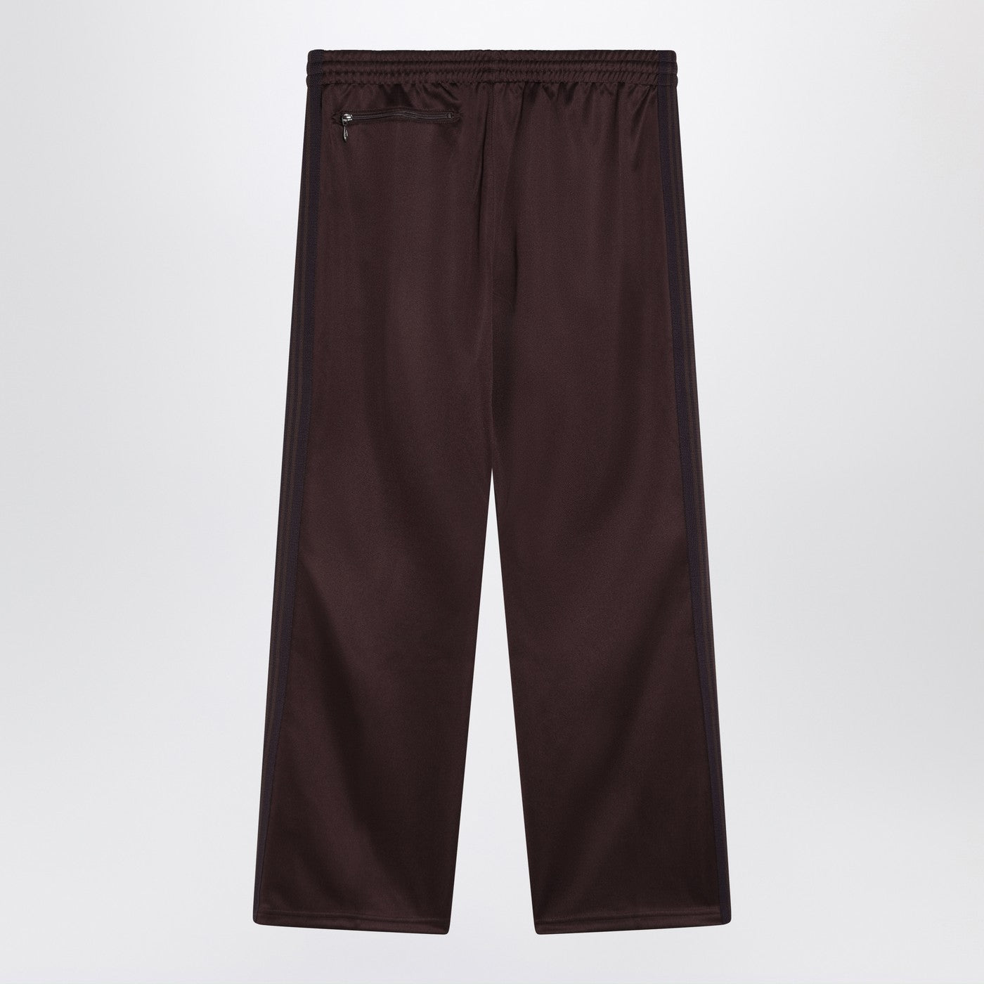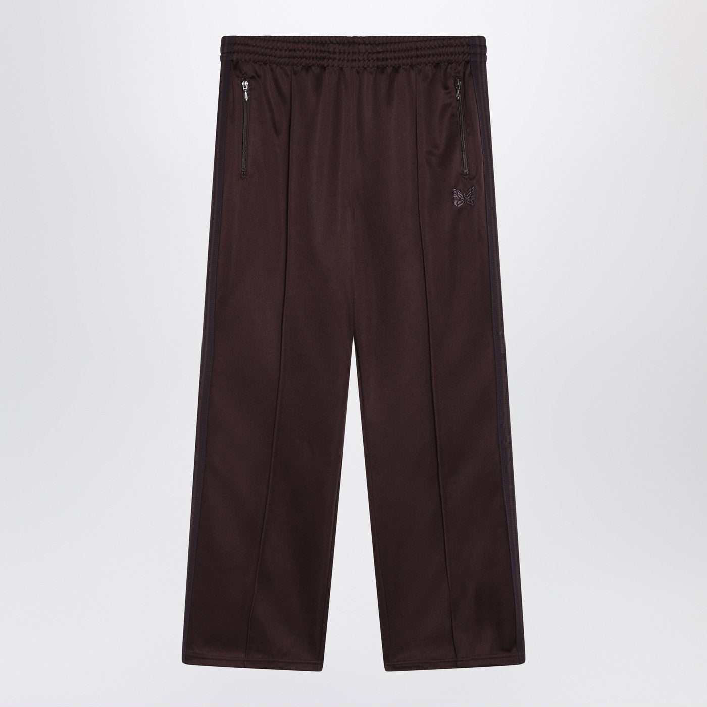 Braune Nadeln Jogginghose mit einem elastischen Bund, zwei Reißverschluss -Seitentaschen, gestreiftes Seitenband, Logo auf der Vorderseite und einer Reißverschlusstasche auf der Rückseite.