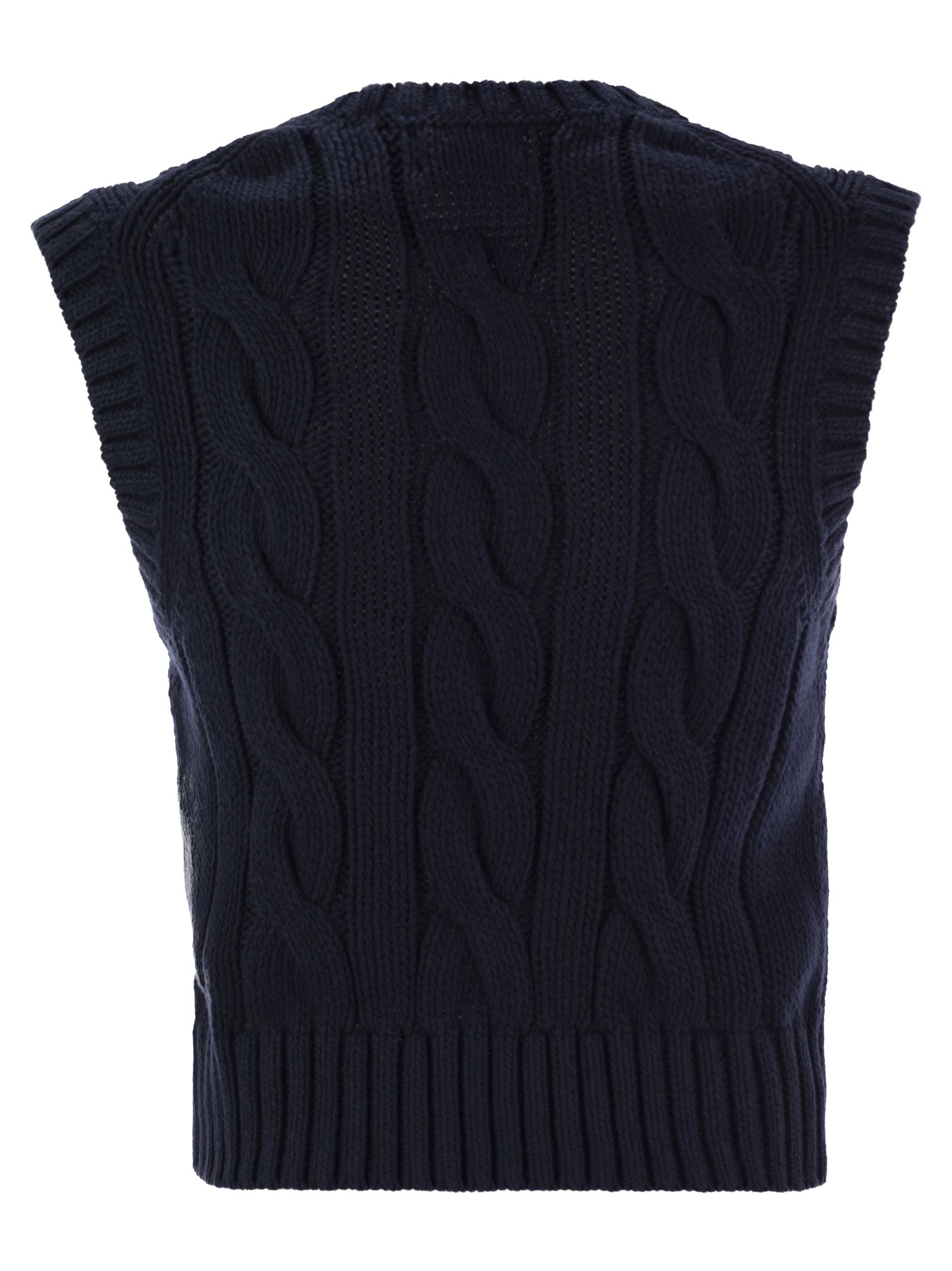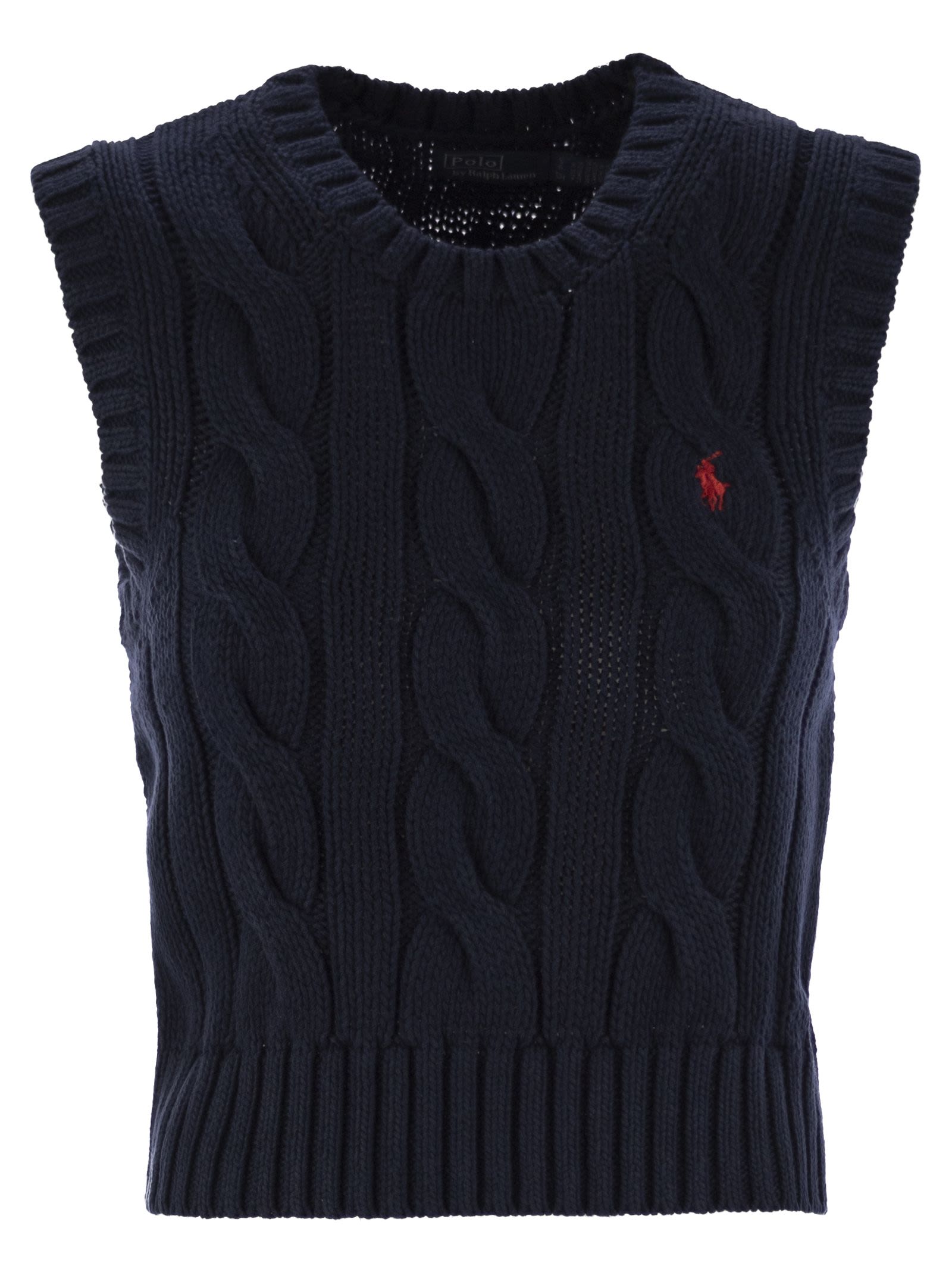 Mit einer Kabelknastung verfügt dieser Crew-Hals-Strick-Weste in weicher Kämpferwatte einen modernen Kurzschluss und das exklusive gestickte Pony auf der Brust. - Kurz, montiert geschnitten - Länge über den Hüften - gerippte Crew -Hals - ärmellose Silhouette - gerippte Armlöcher - exklusives gestickeltes Pony auf der linken Brust - Rippen -Saum -Designer -ID: 211959295 002