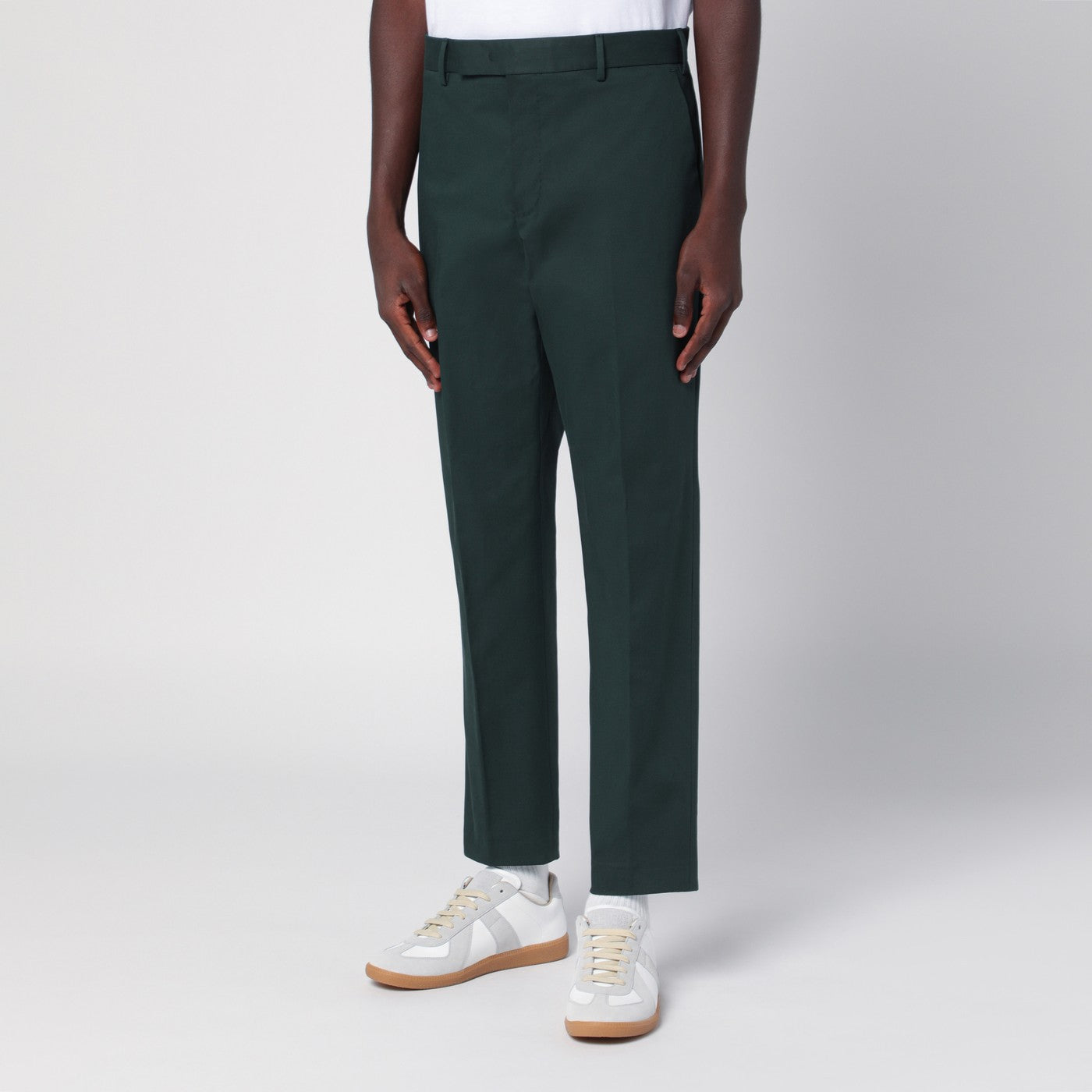 Hose in dunkelgrüner Baumwolle von Pt Torino mit zwei Kettentaschen an der Seite, zwei Kettentaschen auf der Rückseite, vorne und Gürtelschlaufen an der Taille.