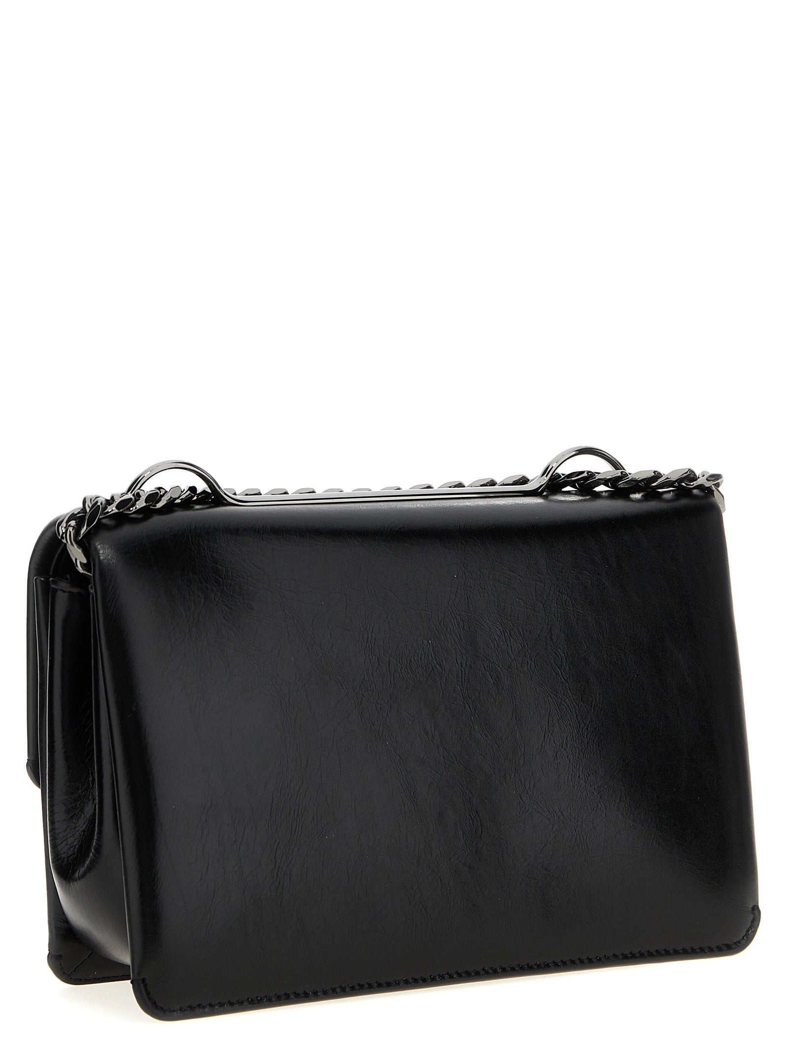 Leder -Umhängetasche mit Klappenverschluss mit 'Vlogo Locker' Detail, Kettengriff und Schiebende Leder.