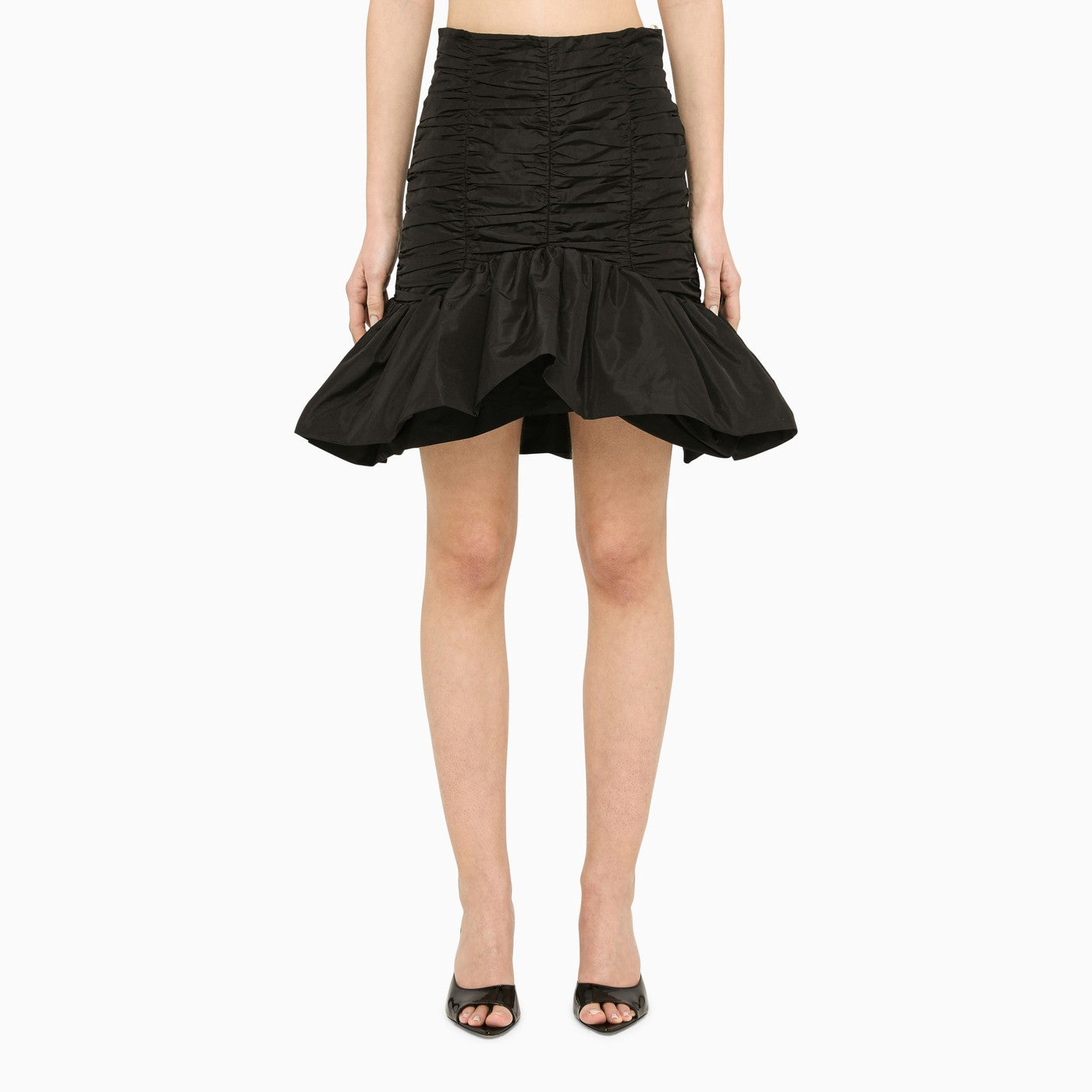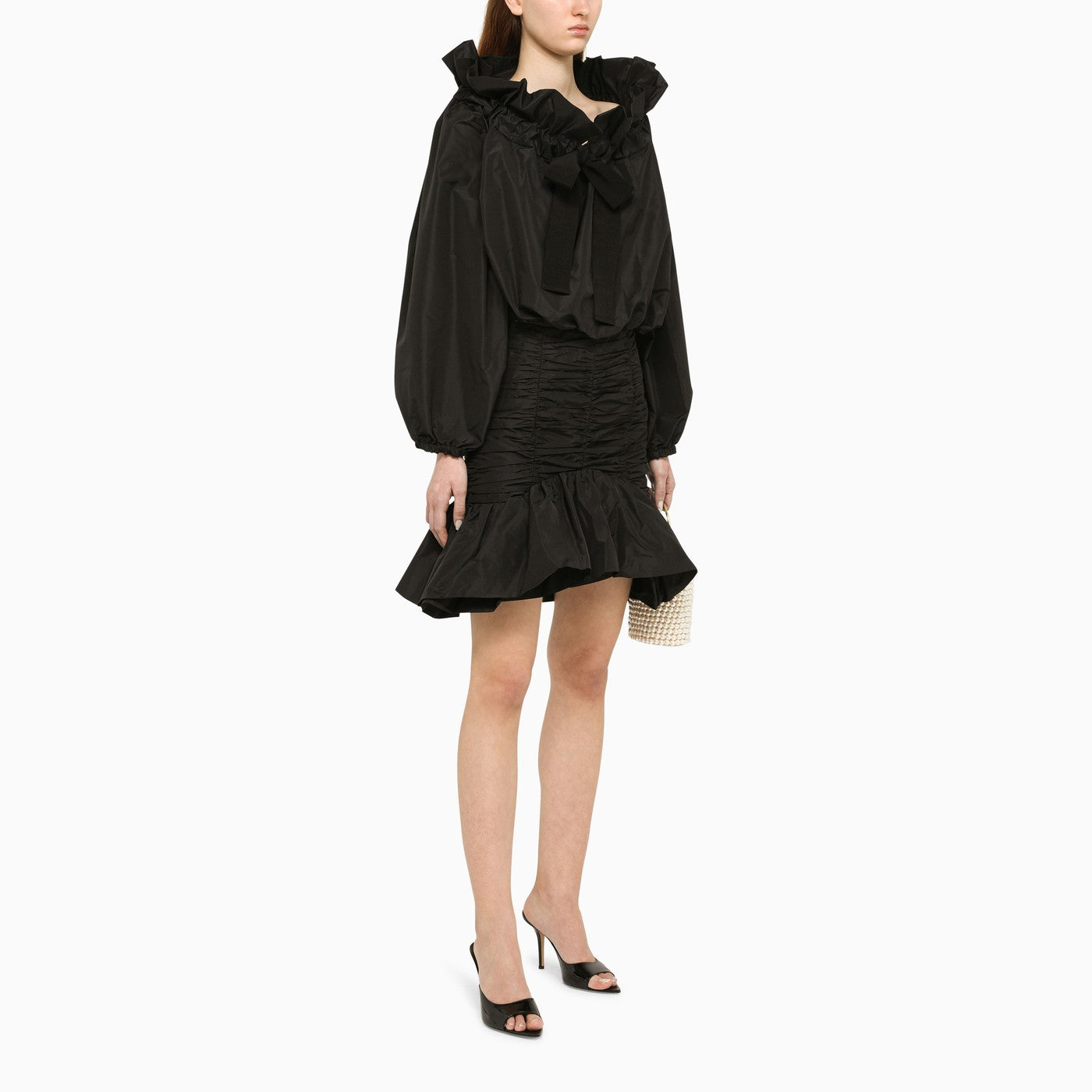 Kurzrock von Patou in schwarzem technischem Stoff mit einem ausgestellten Saum und dekorativen Treffern.
