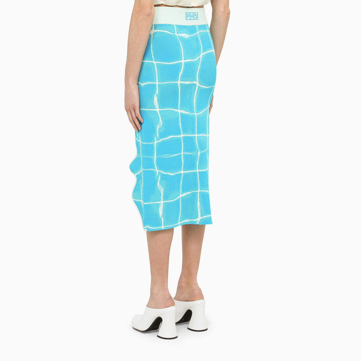 Aqua-farbiges recyceltes Viskose-Trikot-Midi-Rock aus pH5 mit einem asymmetrischen Design, einer Rippenhoch Taille und einem vorderen Schlitz.