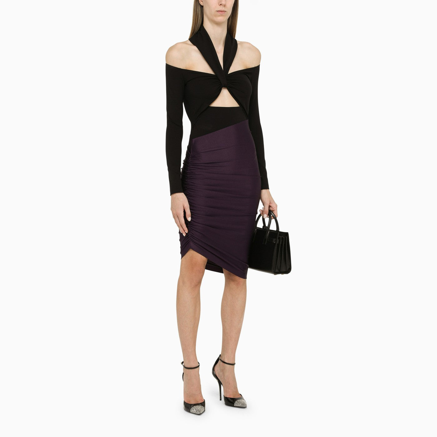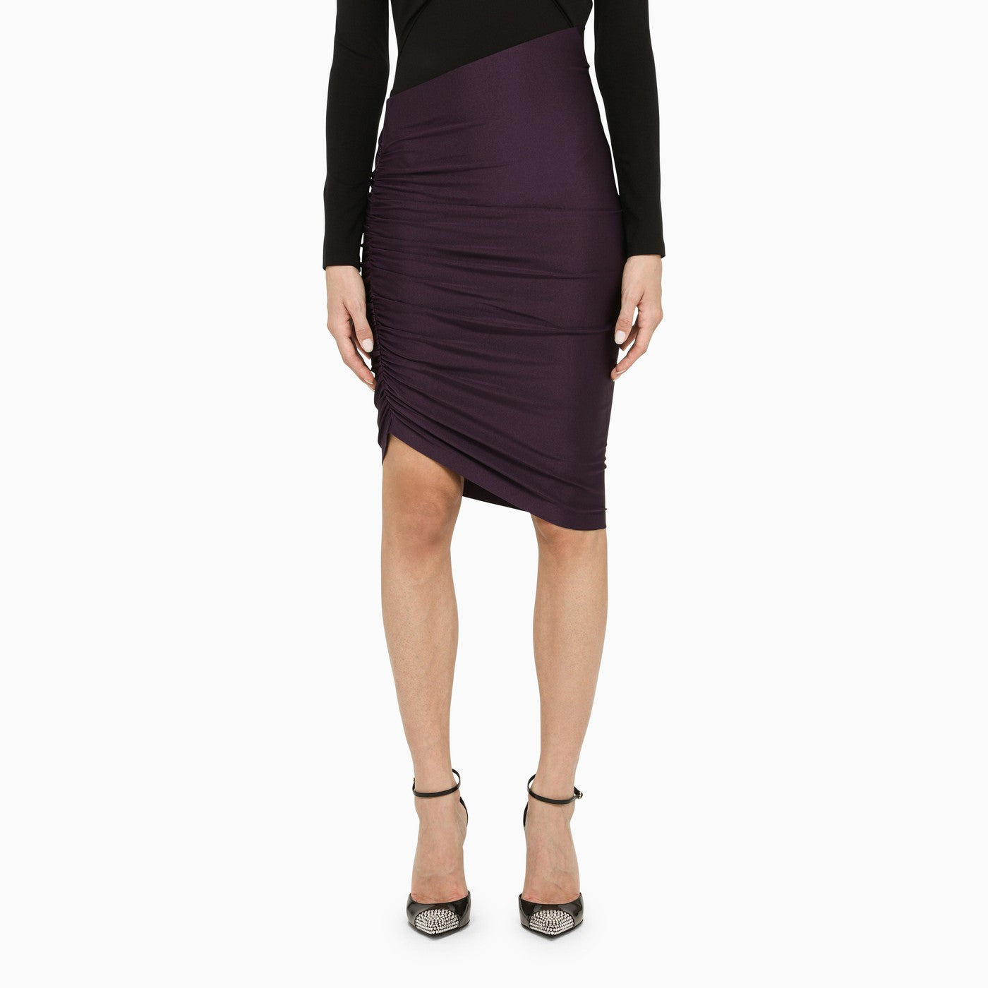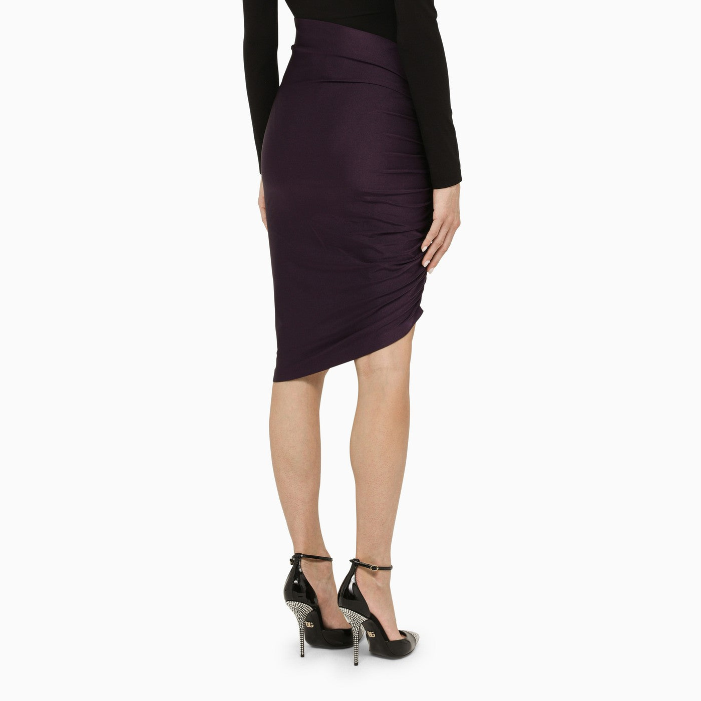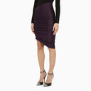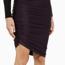 Drapiertes Bleistiftrock am Andamane in einem weinfarbenen Stretchstoff in einem asymmetrischen Design.