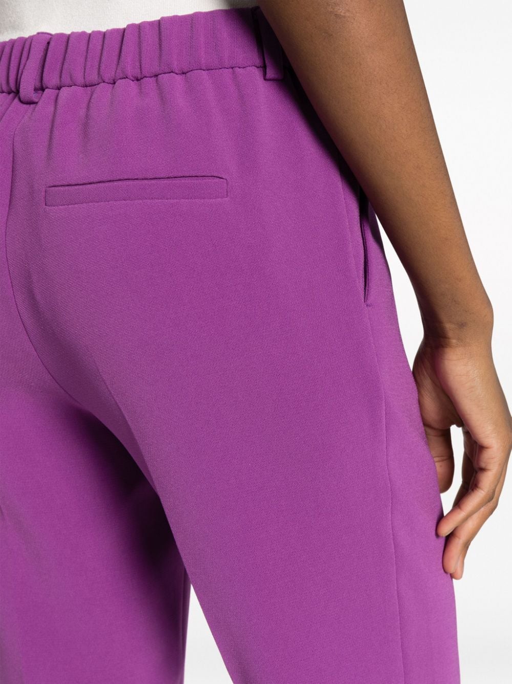 Krümmte sich verjüngende Hosen von Alberto Biani mit violettem Purpur, Gürtelschlaufen, elastischer Bund, gepresstes Falten, verkürztem Bein und gerade Saum.