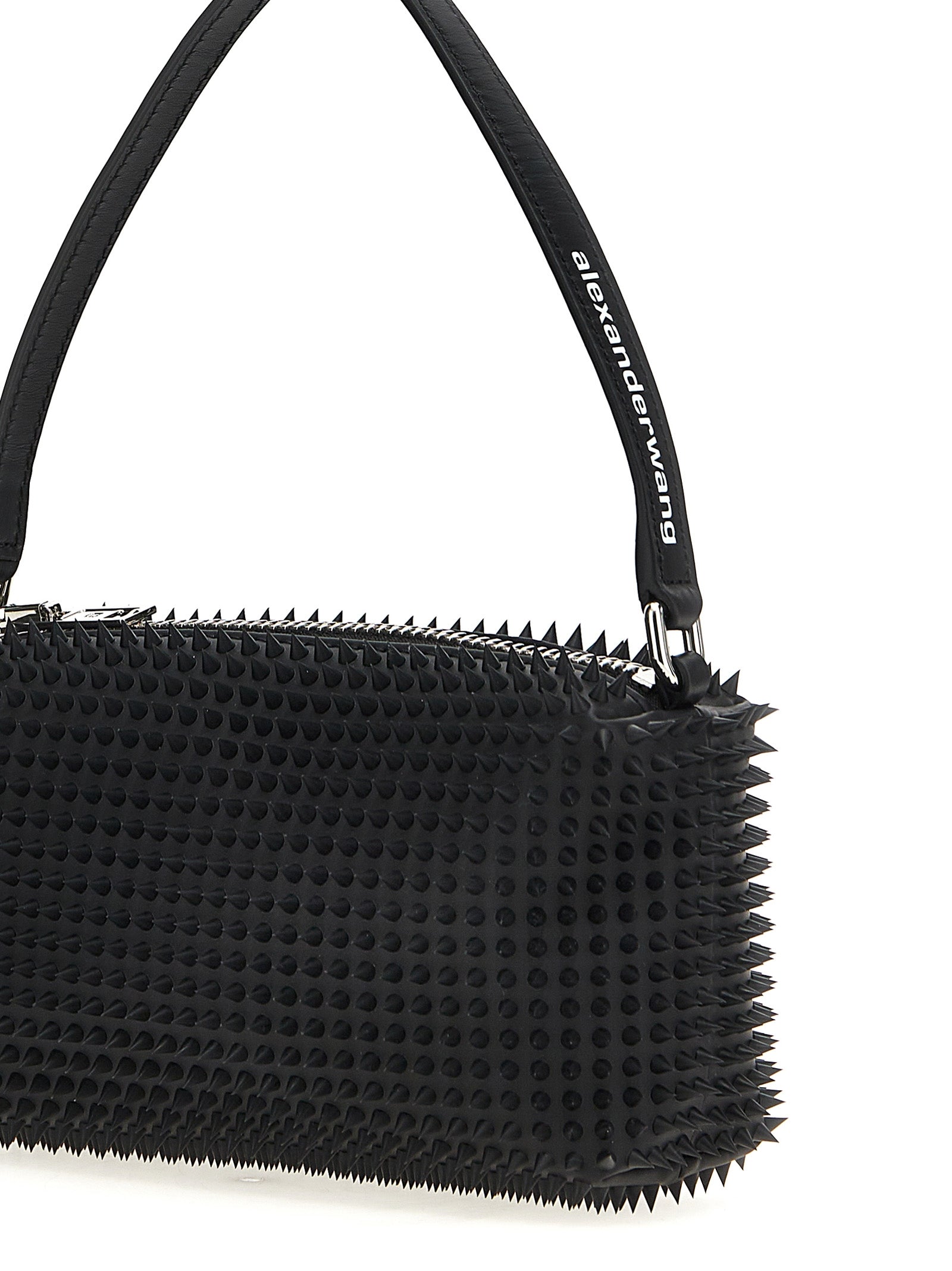 Handtasche mit "Erbin Medium" mit All-Over-Gummi-Bolzen, Reißverschluss, Leder-Logo-Griff.