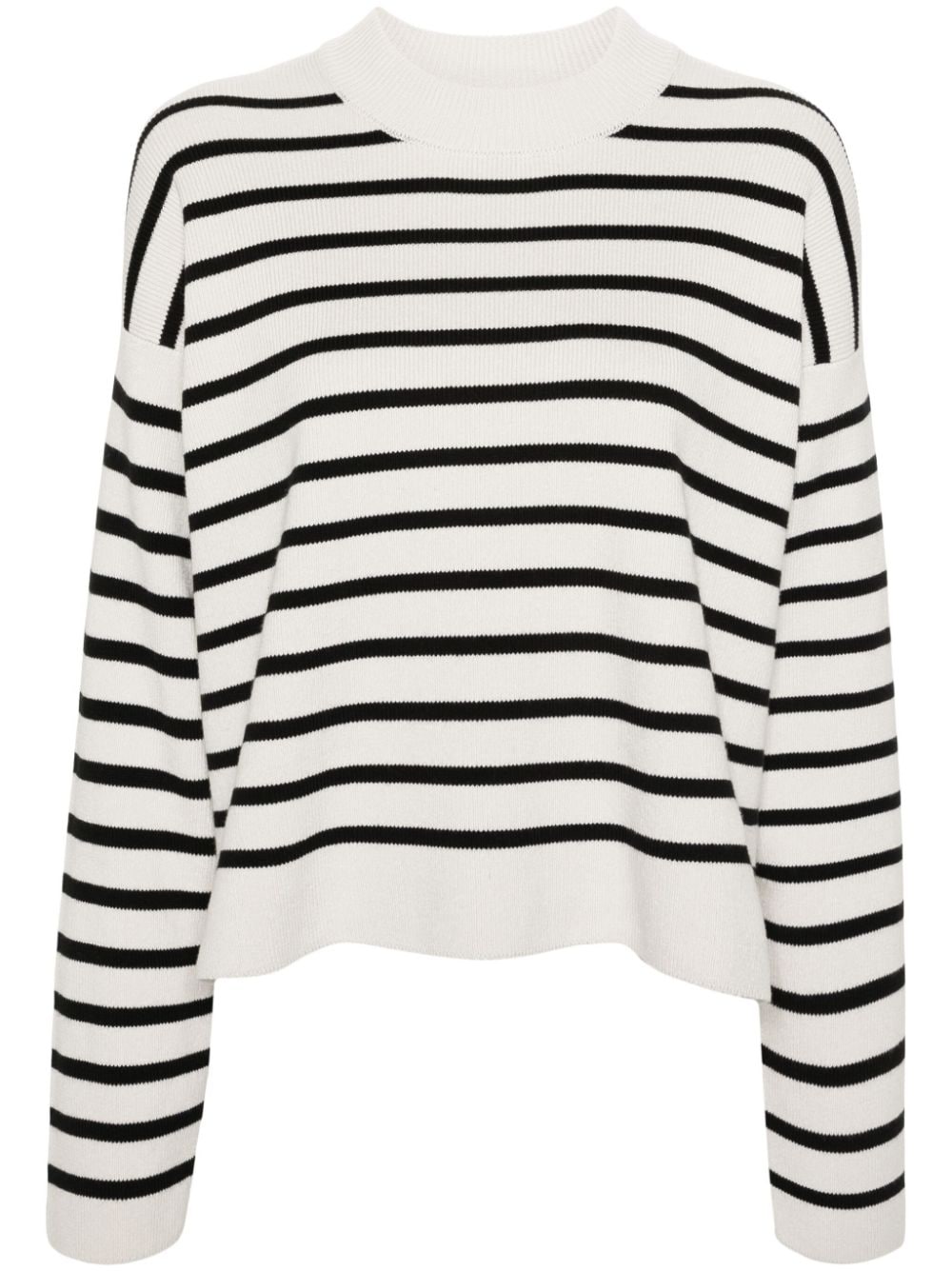 Weiße/schwarze organische Baumwollmischung Strickkonstruktion Horizontales Streifenmuster bestickter Logo an die Seitengeschwimmte Crew Nacken -Schulter -Schulter -Langschlaum Erfahren Sie mehr darüber, was ein Produkt auf unserer bewussten Kriterienseite bewusst macht