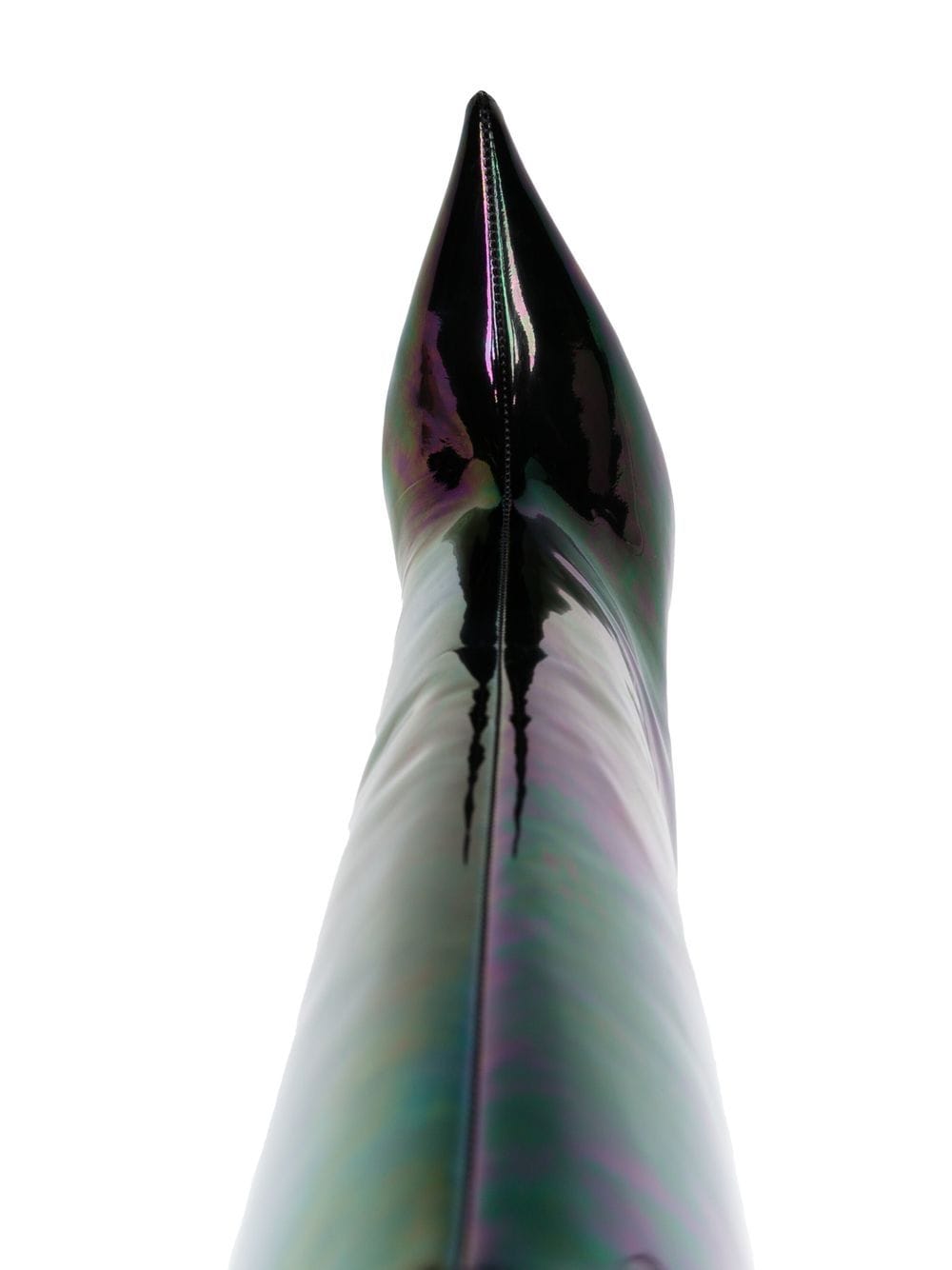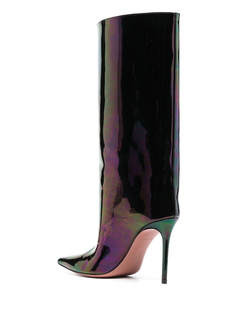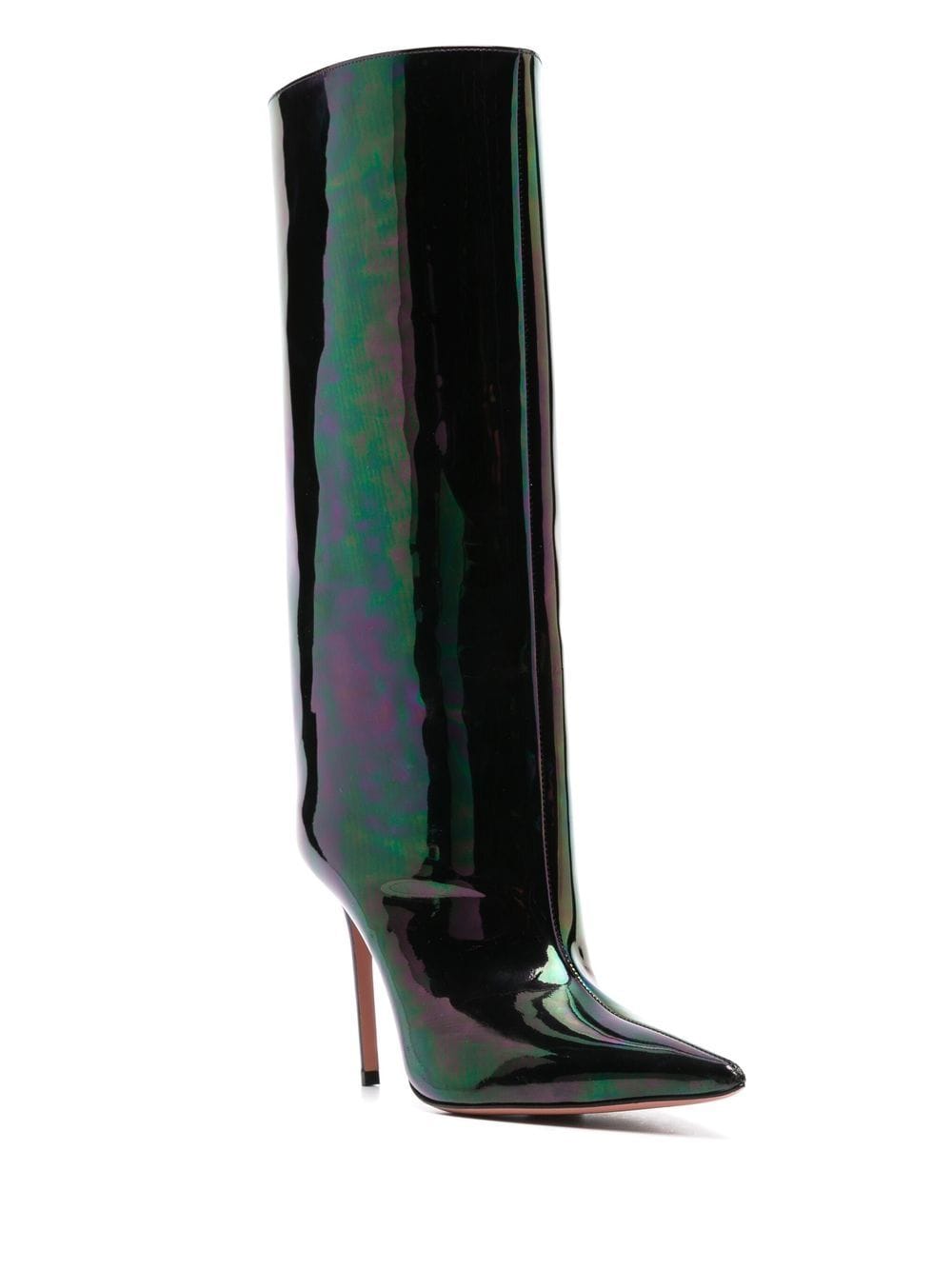 Fiona 100 -mm -Stiefel von Amina Muaddi mit schwarzem, Kalbleder, Patentfinish, schillerndem Effekt, spitzer Zehen und hoher Stiletto -Ferse.