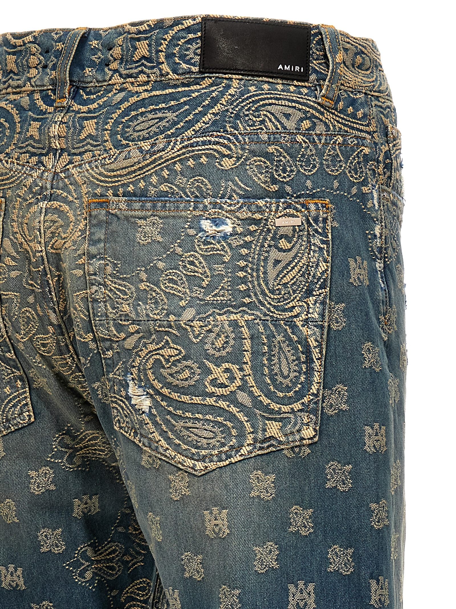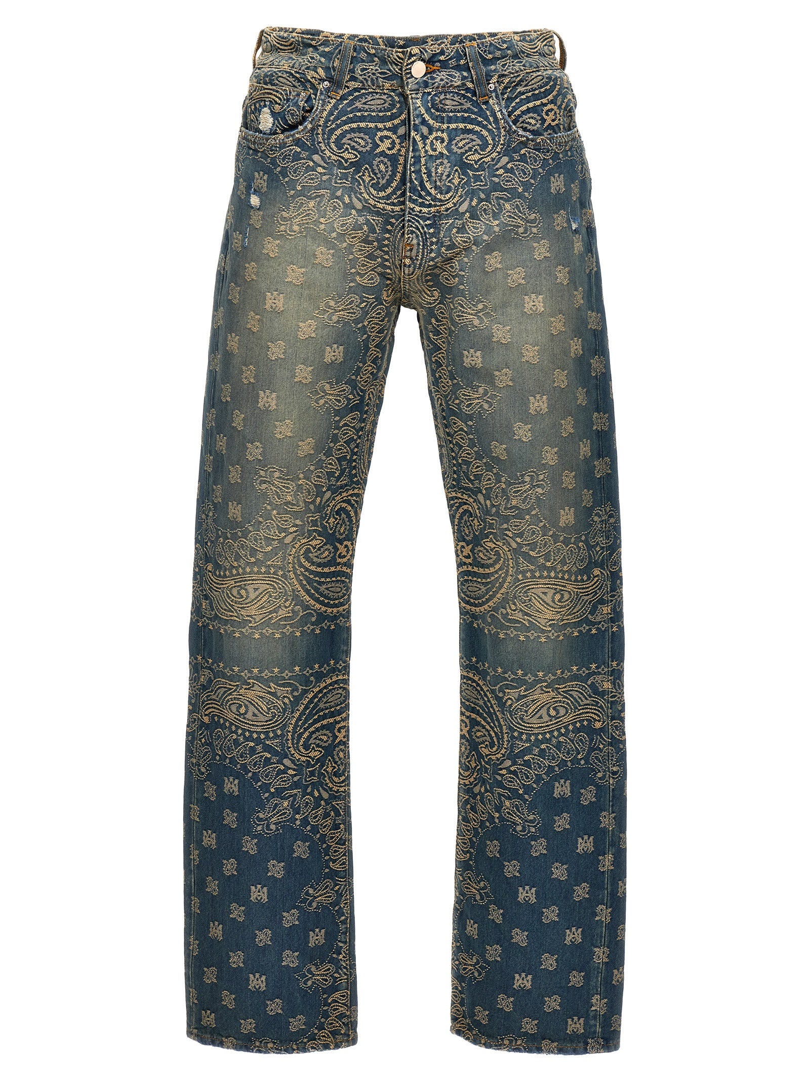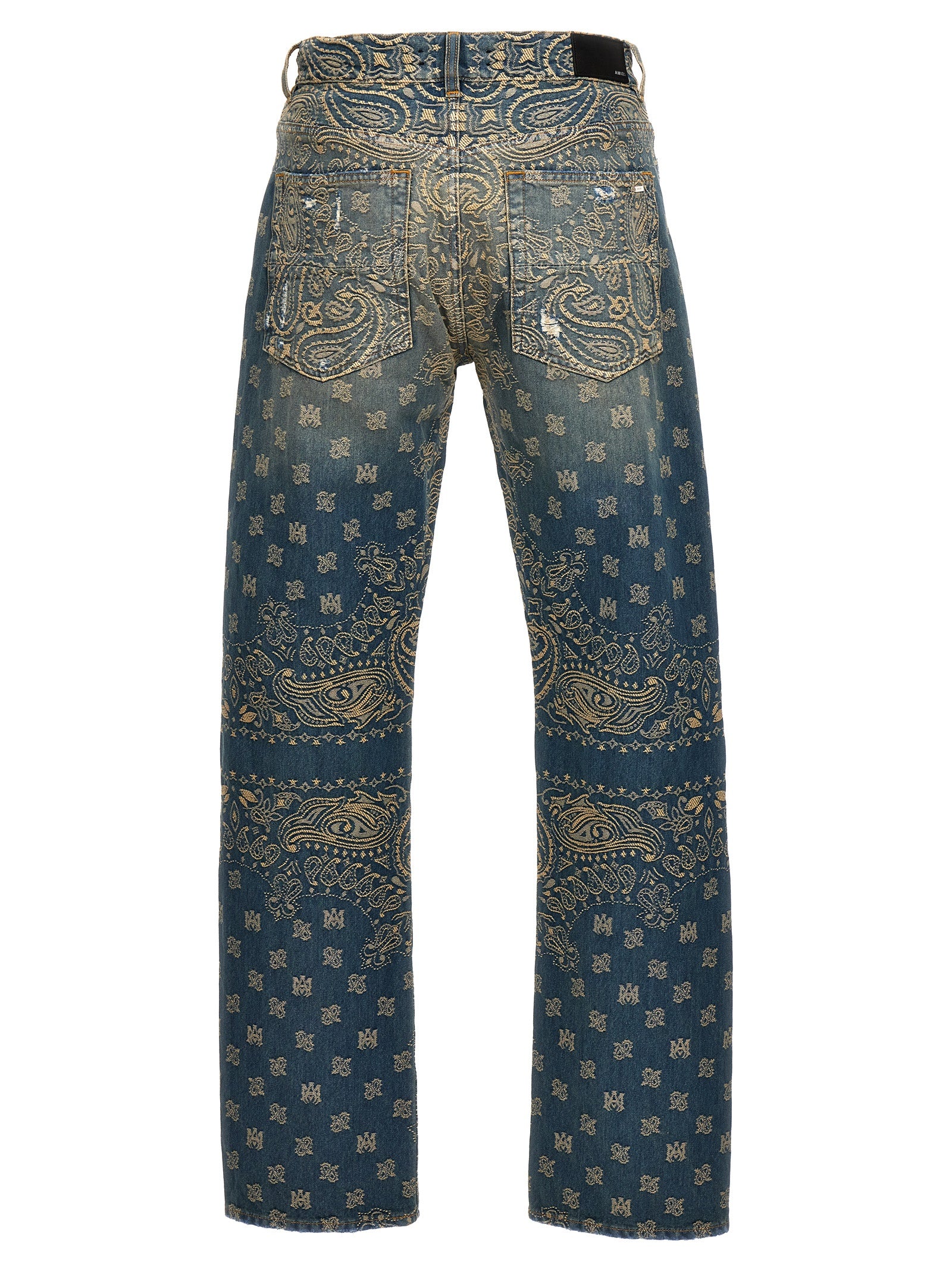 'Bandana Jaquard' Denim-Jeans mit All-Over-Bandana Jacquard-Effekt, Ripps, Knopfverschluss.