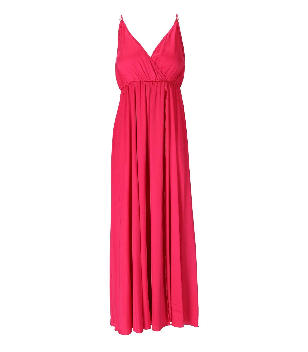 Eda Kleid von Aniye von Fuchsia Satin mit vorderem Schlitz und breiter V-Ausschnitt. Verstellbare Träger mit kleinen rosa Rosen an der Vorderseite. Zusammensetzung: 96% Polyester, 4% Elastan.