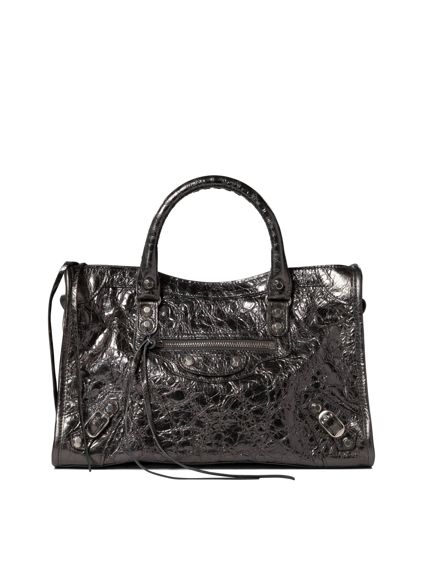 Balenciaga 's "Le City S"Handtasche ist das perfekte Accessoire für die moderne Frau, die eine Mischung aus Eleganz und Funktionalität sucht. Aus feiner Arena -Lambskin -Leder sticht diese Tasche für ihre Raffinesse und Praktikabilität, die sich ideal für die Bereicherung jedes Outfits mit einem Hauch von Stil bereichern kann. || - Abmessungen: 30x20x10 cm - Zwei handgewebte Ledergriffe - Abnehmbar und verstellbarer Schultergurt (Spannweite: 50 cm) - glänzendes silbernes Finish - Reißverschluss und geknotete Leder -Abzieher - Vordertasche mit Reißverschluss und geknoteter Lederabzieher - Innenpacktasche - Baumwoll -Leinwandfutter || Kombinieren Sie diese Tasche für einen kompletten und stilvollen Look mit einem beige Trenchcoat und einem Paar schwarzer Pumpen. Für eine lässigere Stimmung entscheiden Sie sich für Zigarettenjeans und eine weiße Bluse.