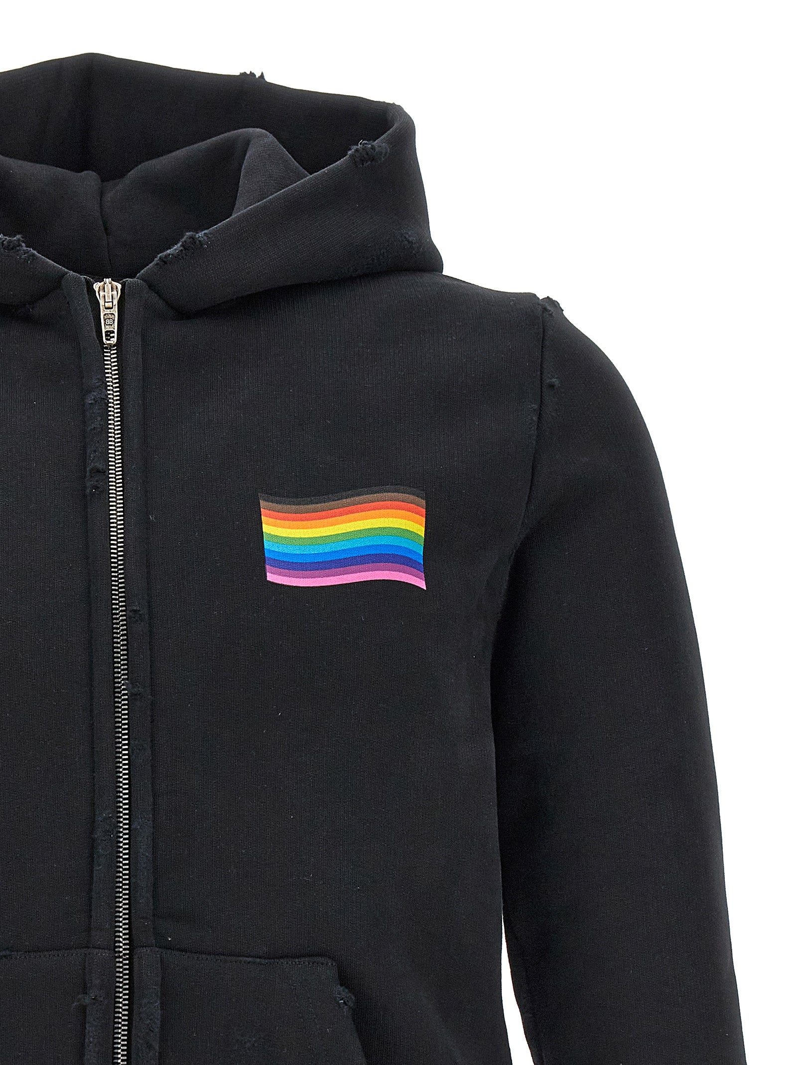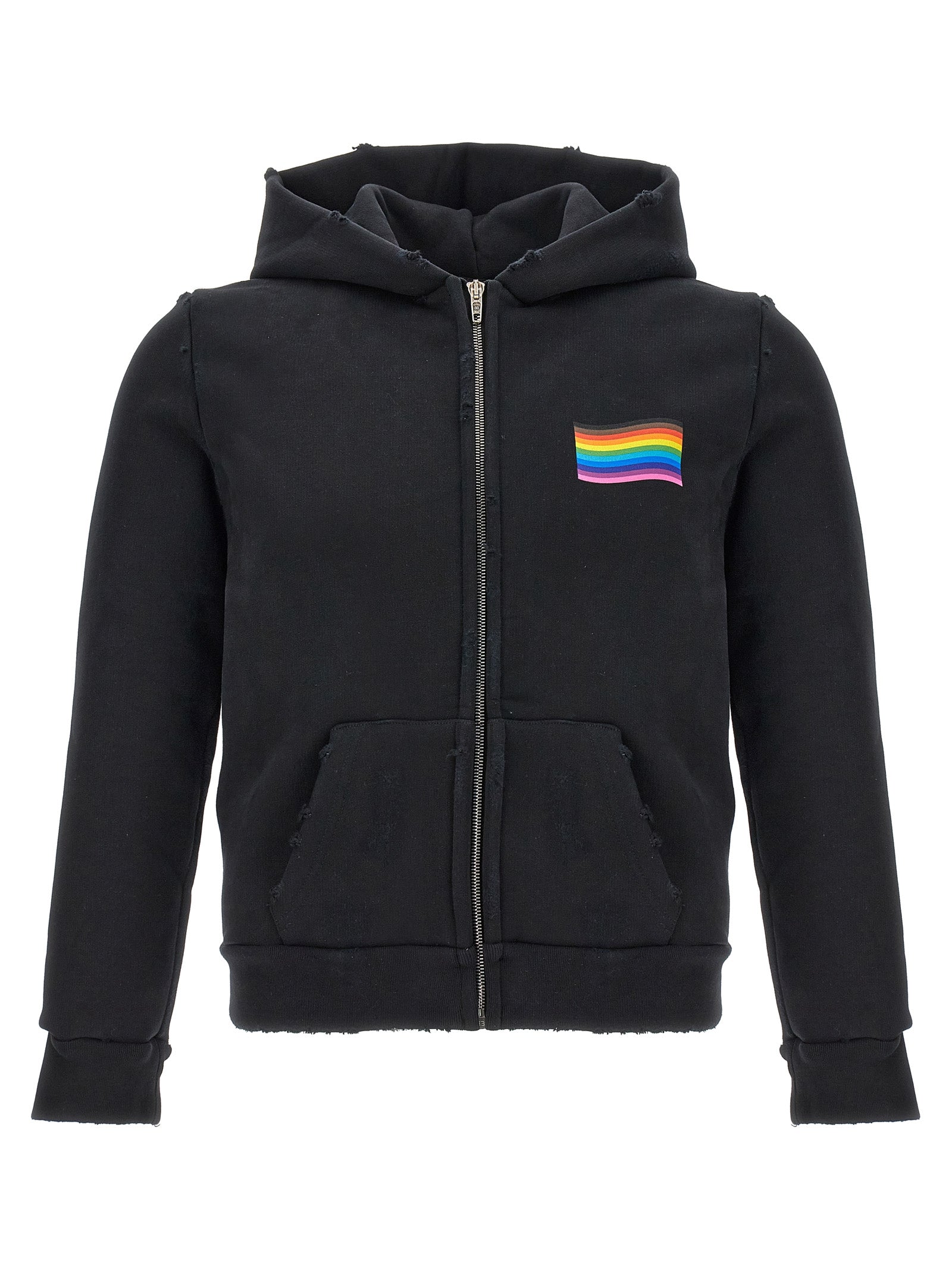 Stretch-Baumwoll-Hoodie mit Vorderbogendruck, Details der Nutzungseffekte, Reißverschluss, Taschen, langen Manschettenärmel.