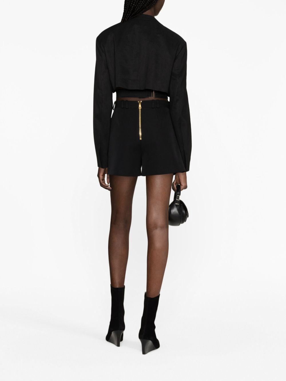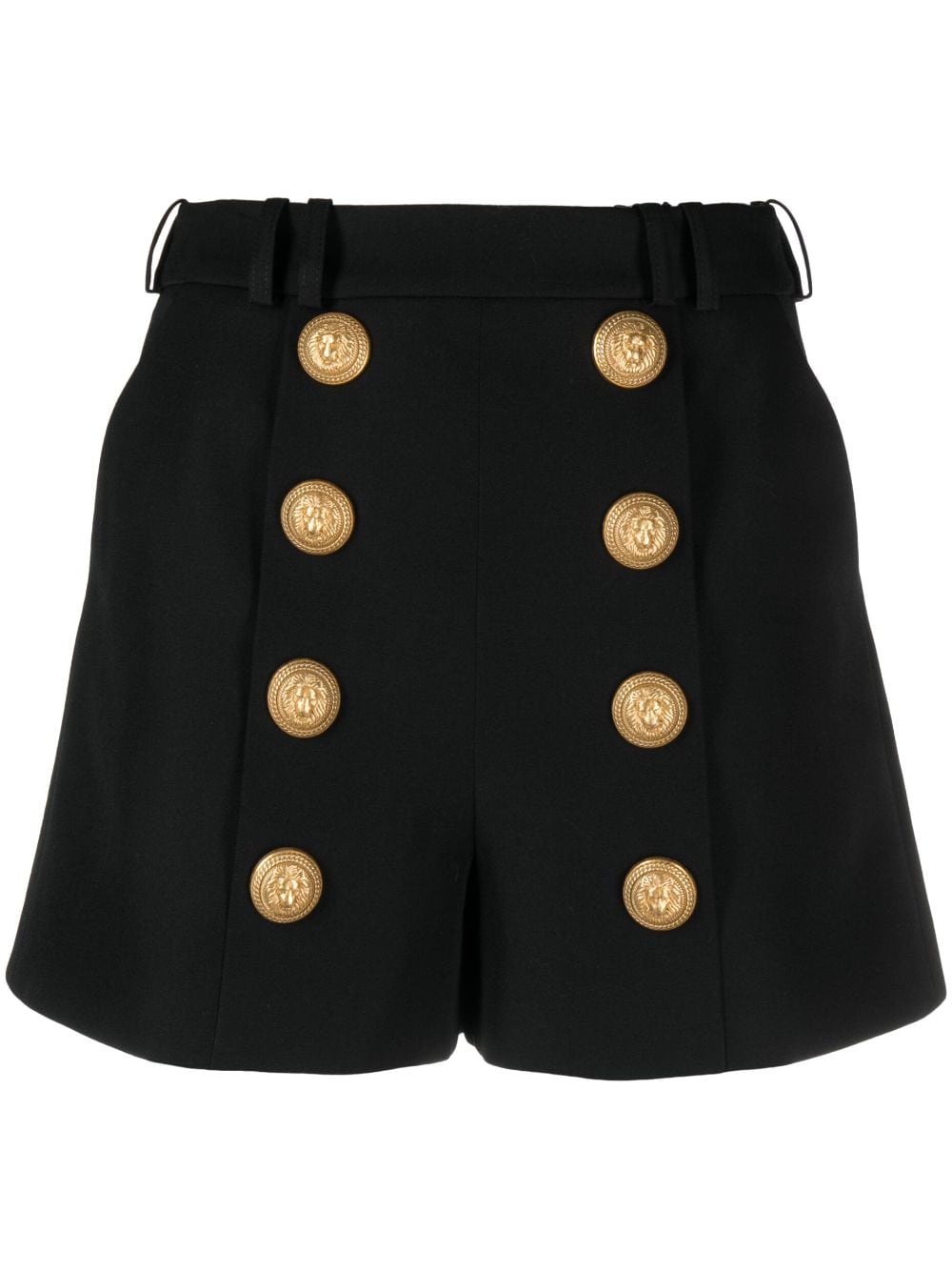 Schwarzes Virgin Wolle maßgeschneiderte geschnittene Goldton-Knöpfe hoher Taille Heck-Reißverschluss Dieses Element enthält mindestens 50% Materialien, die zertifiziert oder allgemein anerkannt sind, die durch Produktions- und/oder Herstellungsprozesse, die den Wasserverbrauch reduzieren, und die Verwendung von weitgehend anerkannt sind schädliche Chemikalien oder Wiederverwenden Nebenprodukte des Produktionsprozesses. Erfahren Sie mehr darüber