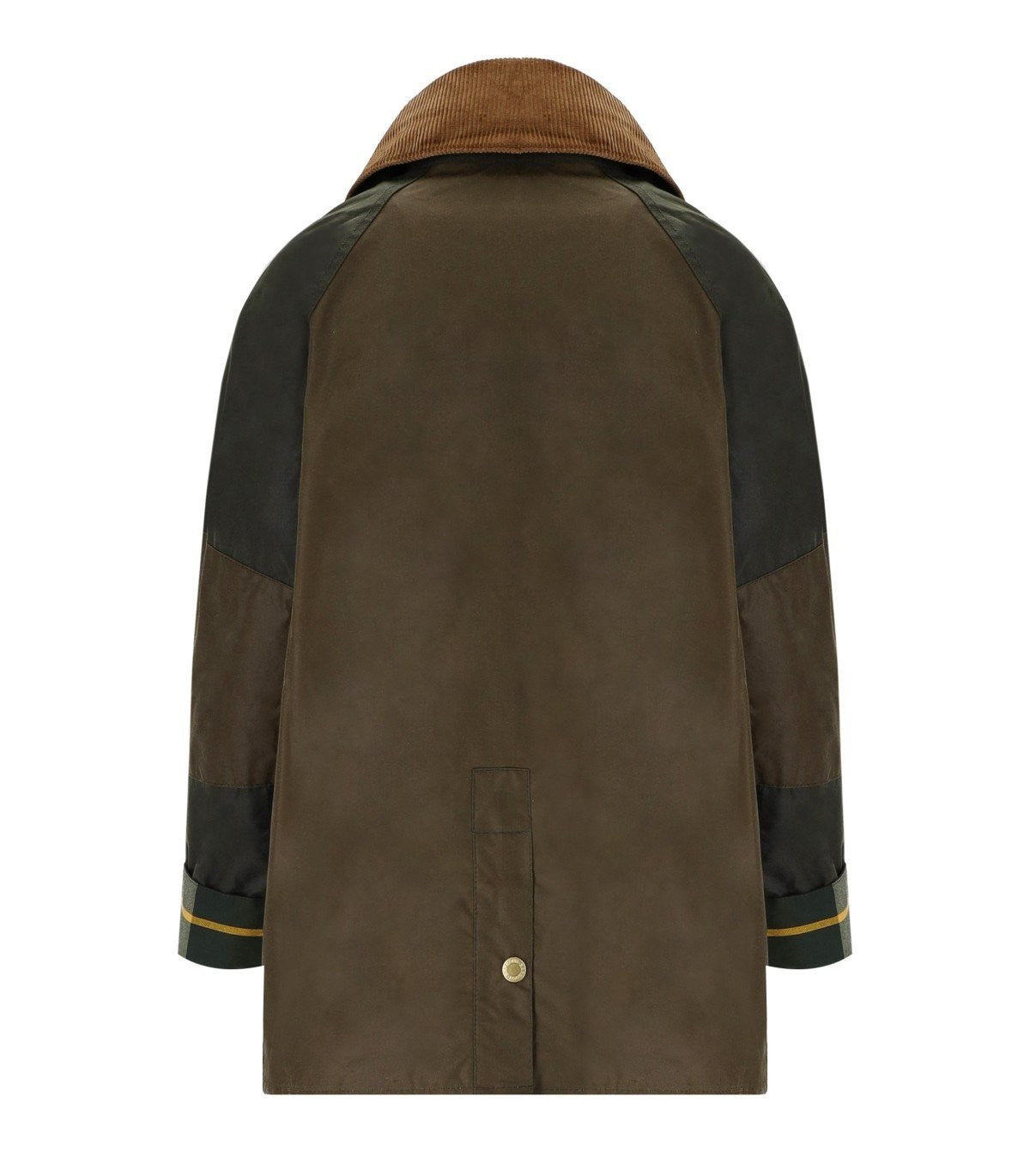 Barbour Allerston Wachsjacke aus gewachster Baumwolle in Olivengrün. Es ist durch einen großen gerippten Kragen in Braun gekennzeichnet und verfügt über einen Front -Reißverschluss mit einem übergroßen neu interpretierten Logo. Ausgestattet mit zwei Klappentaschen und zwei Taschen, die mit goldenen Knöpfen fertiggestellt sind, hat es Manschetten in einem Tartan -Muster. Übergroße Passform. Zusammensetzung: 100% gewachste Baumwolle. Innere Zusammensetzung: 65% Polyester, 35% Baumwolle.