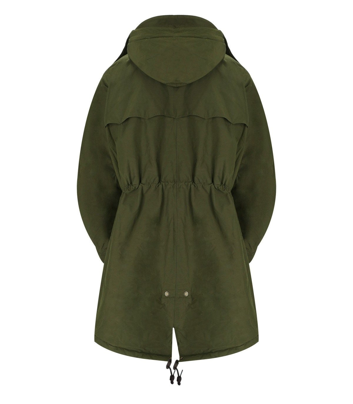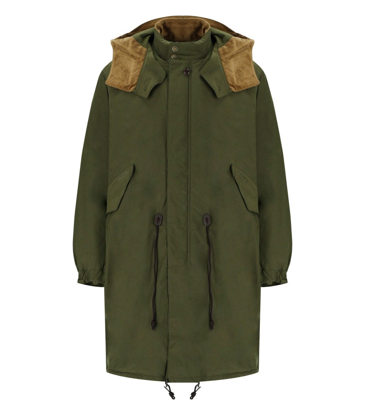 Baracuta Mods Parka für Barbour, bestehend aus einer Baumwollmischung in militärischem Grün. Aus einem Frontverschluss mit einem versteckten Reißverschluss verfügt es über einen hohen Kragen mit silbernen Metallknöpfen. Es hat zwei Taschen vorne mit versteckten Knöpfen und zwei verstellbaren schwarzen Kordeln. Der Rücken hat ein geripptes Muster, das mit einer Kapuze und einem Schlitz unten geschmückt ist. Locker Passform. Außenzusammensetzung: 58% Polyester, 42% Baumwolle. Futter: 100% Baumwolle. Hülsenfutter: 100% Polyamid. Kragen: 100% Baumwolle. Polsterung: 100% Polyester.