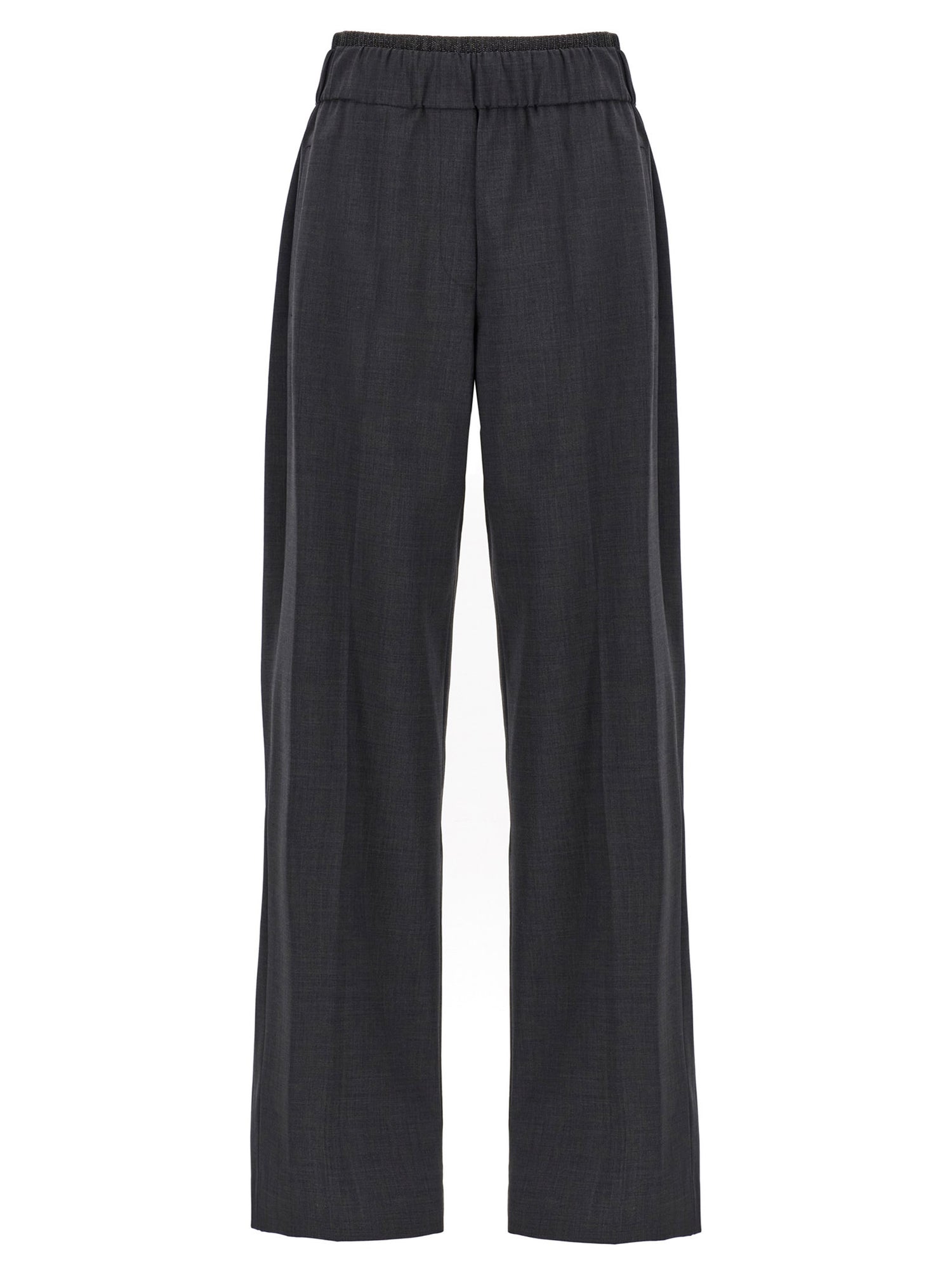 Wollmischhose, elastischer Bund mit 'mobilen' Detail, Taschen, weites Bein.