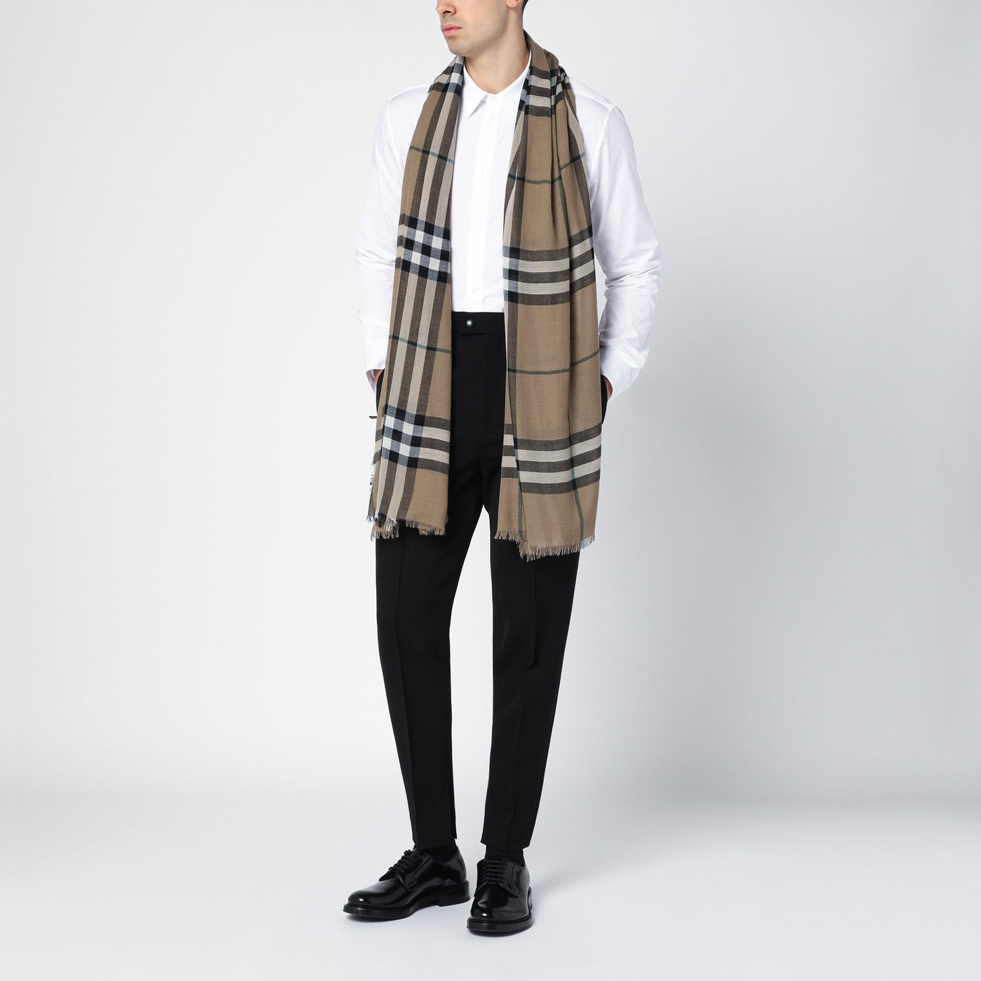 Leichter Wollschal von Burberry verfügt über ein Scheckmuster, eine rechteckige Form und kurze, dünne Randkanten.