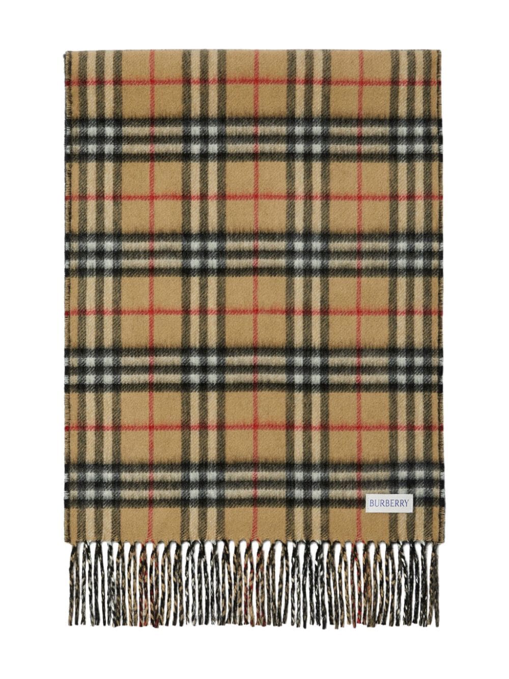Archiv beige/schwarzer Kaschmir Nova Check Muster Logo Patch zum vorderen langen Länge im rundum gestalteten Saum