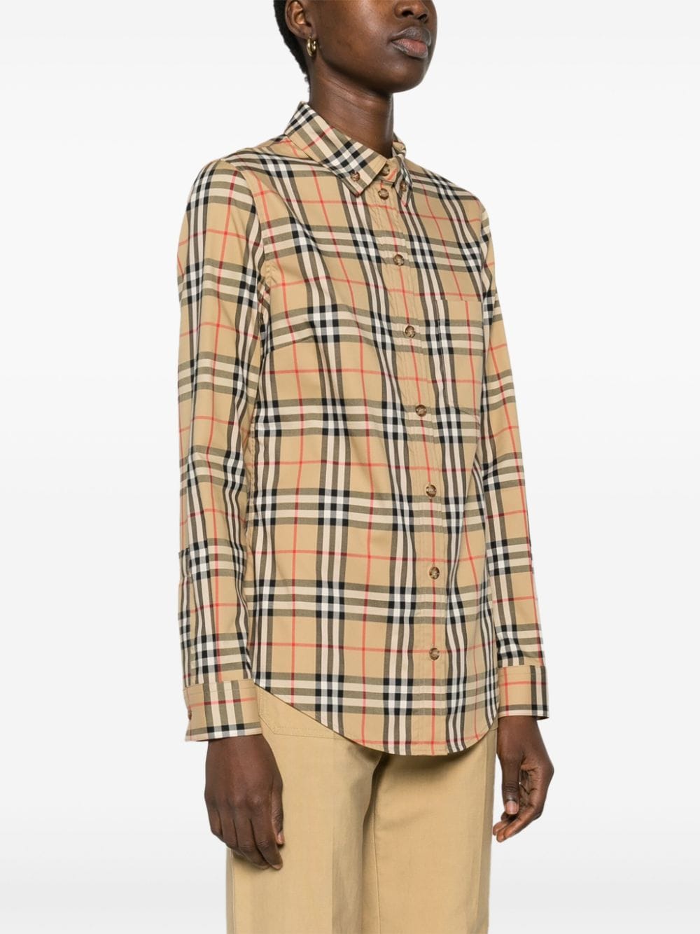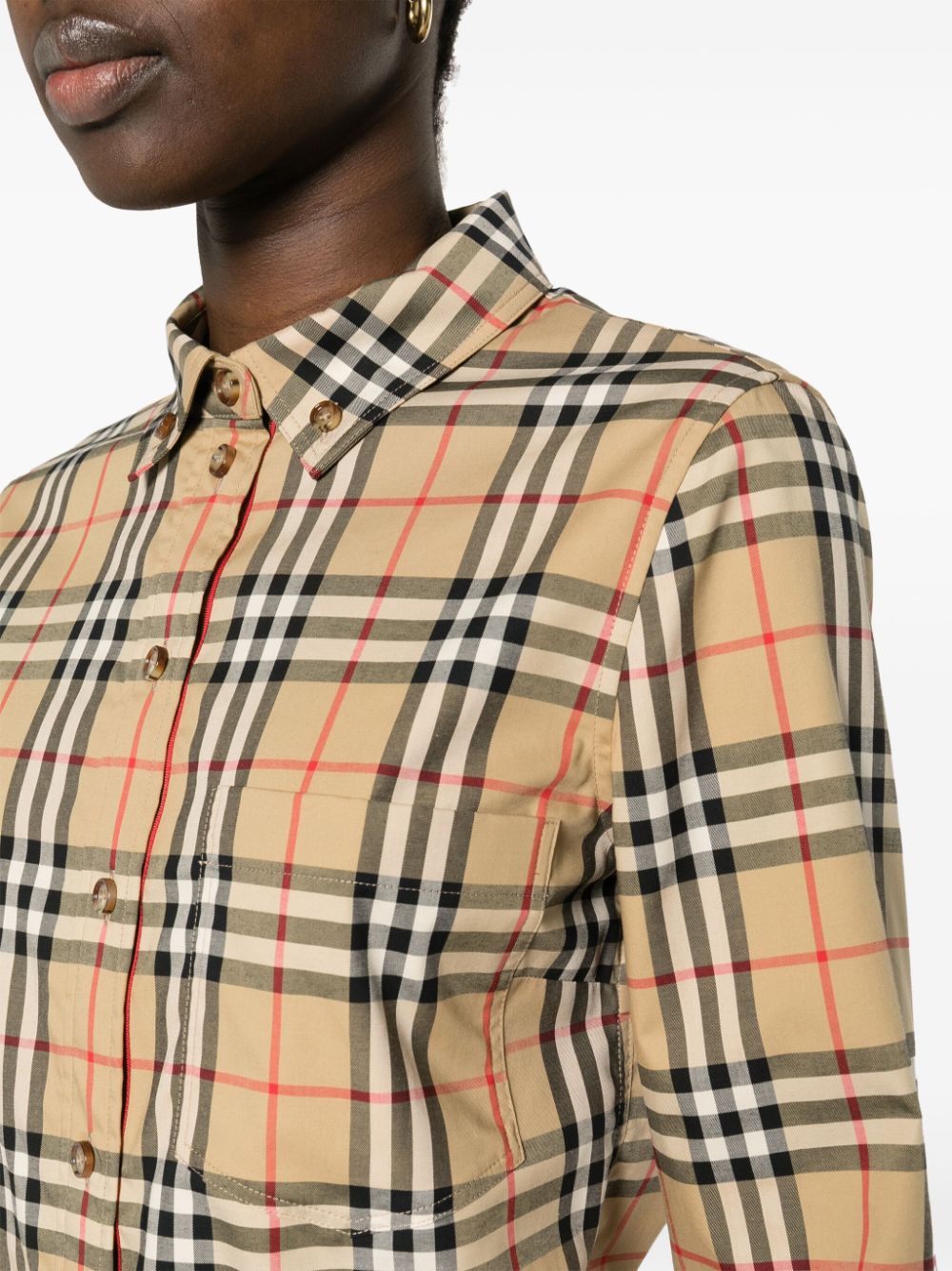 Archiv Beige/Multicolour-Stretch-Schnackkotton-Twill-Weave-Faltendetail in die Cuffs House Check-Muster Button-Down-Down-Fassknopf-Befestigungsanschluss langärmelige Buttontemanschette Brustfleck Tasche gebogen