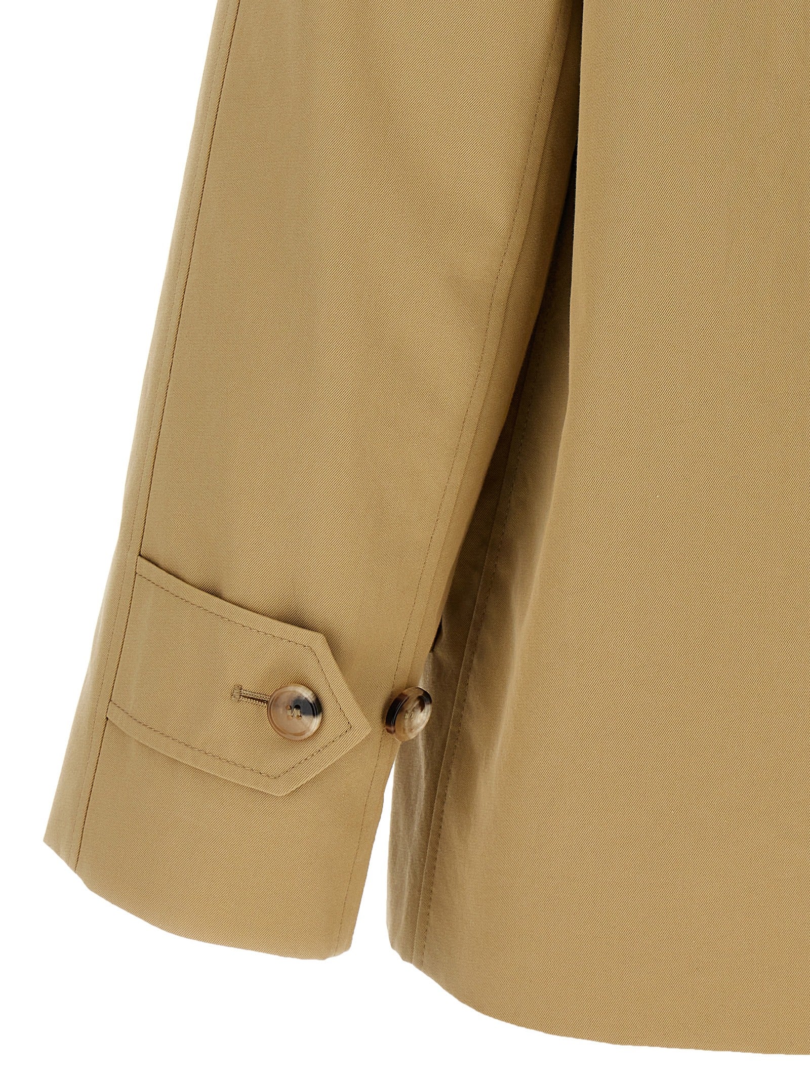 Kurzer Einbrennstätte-Gabardinenschicht mit Knopfverschluss, Taschen, langen Ärmeln mit verstellbaren Gurten.