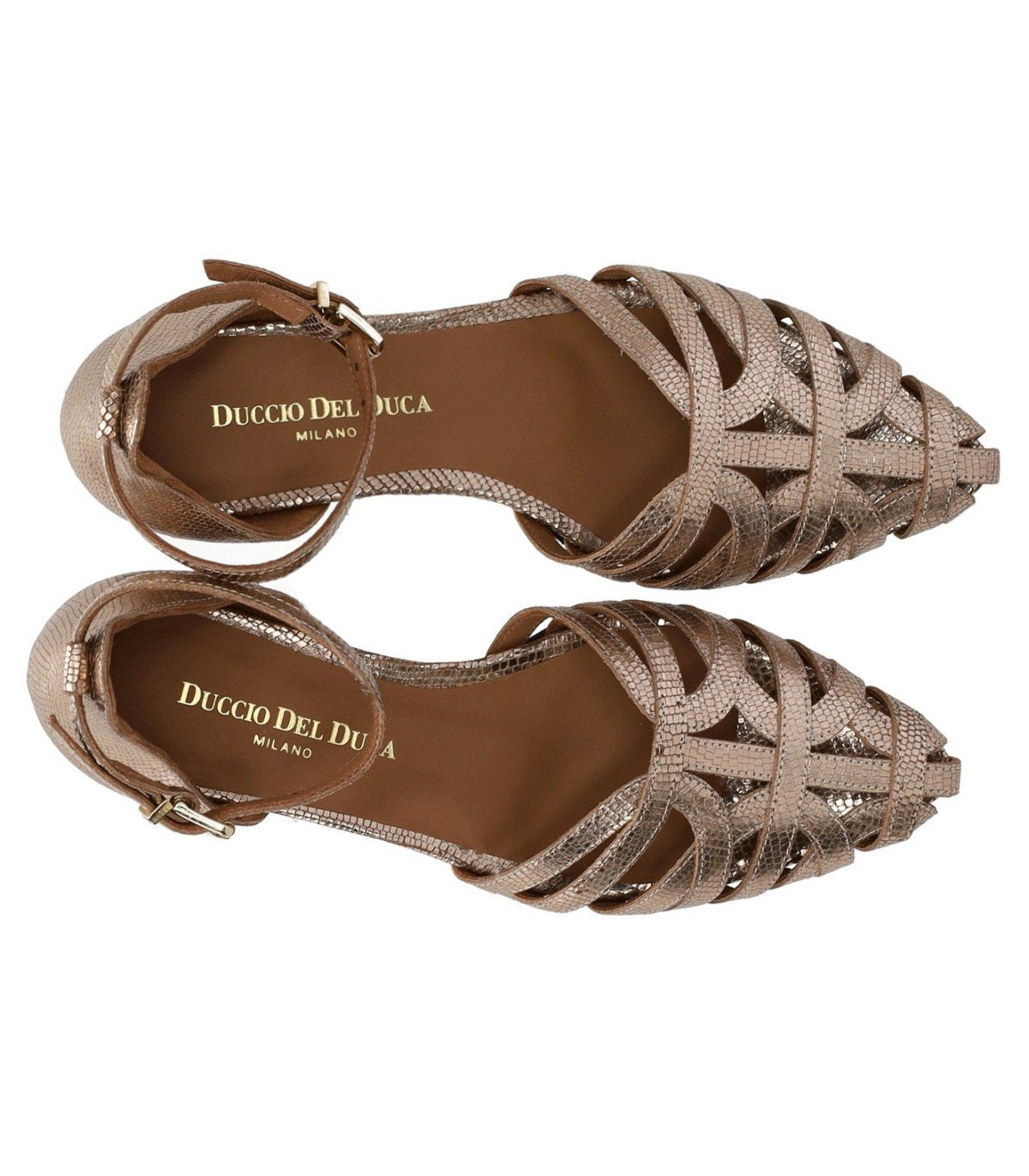 Duccio del Duca Roségold flach Sandale