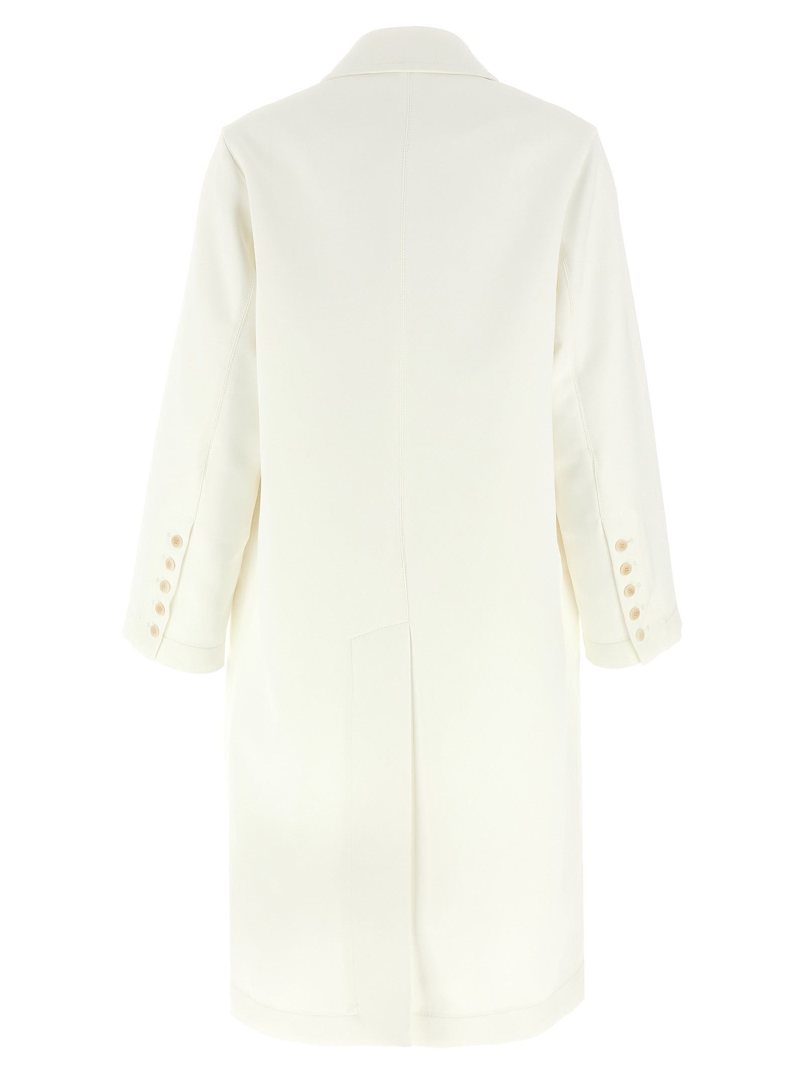 Einbriefen synthetischer Stoffmantel mit Vorderknopfverschluss, Kragen, nicht ausgelöster, Taschen, lange Ärmeln, Rückentlüftung.