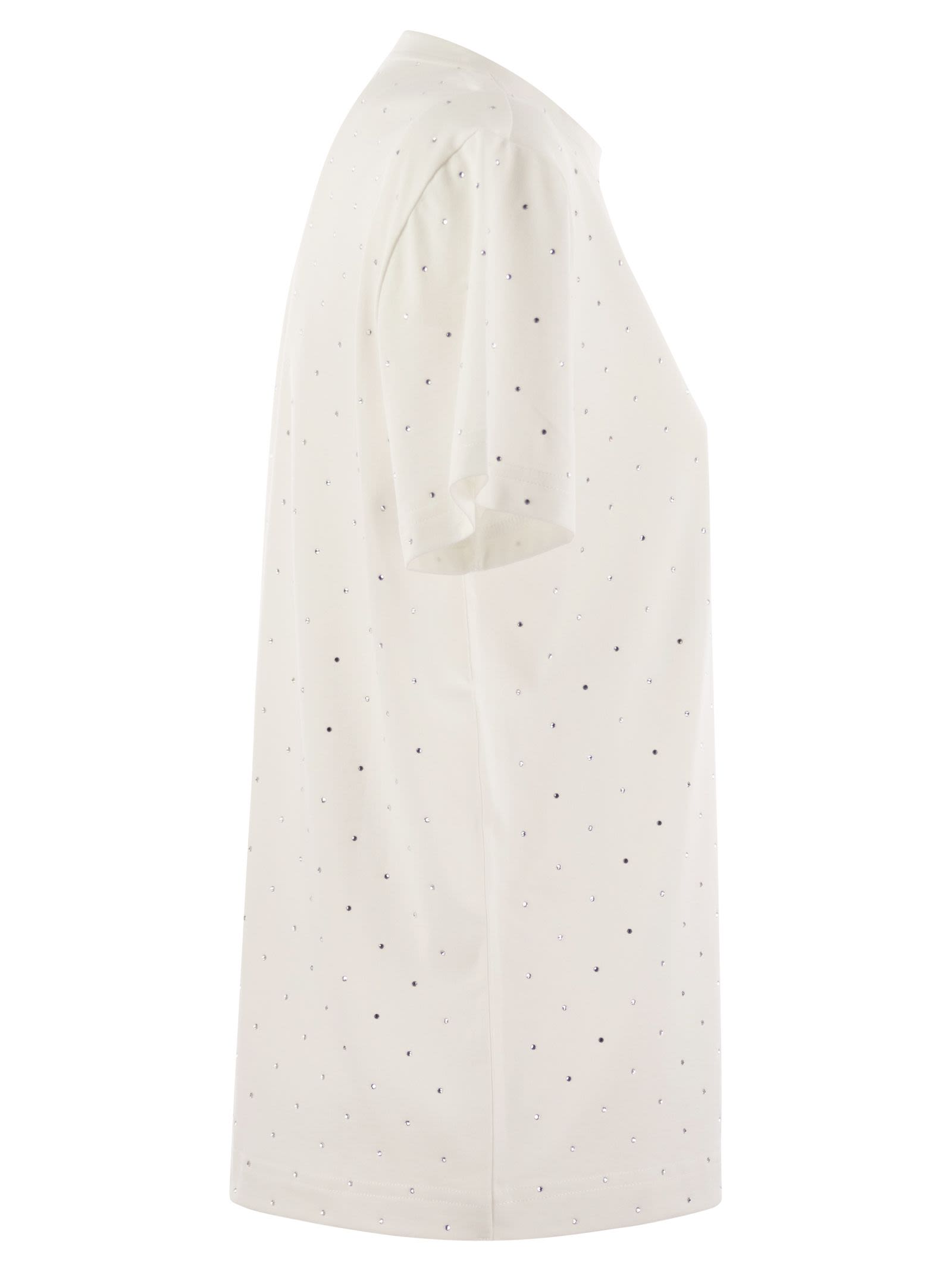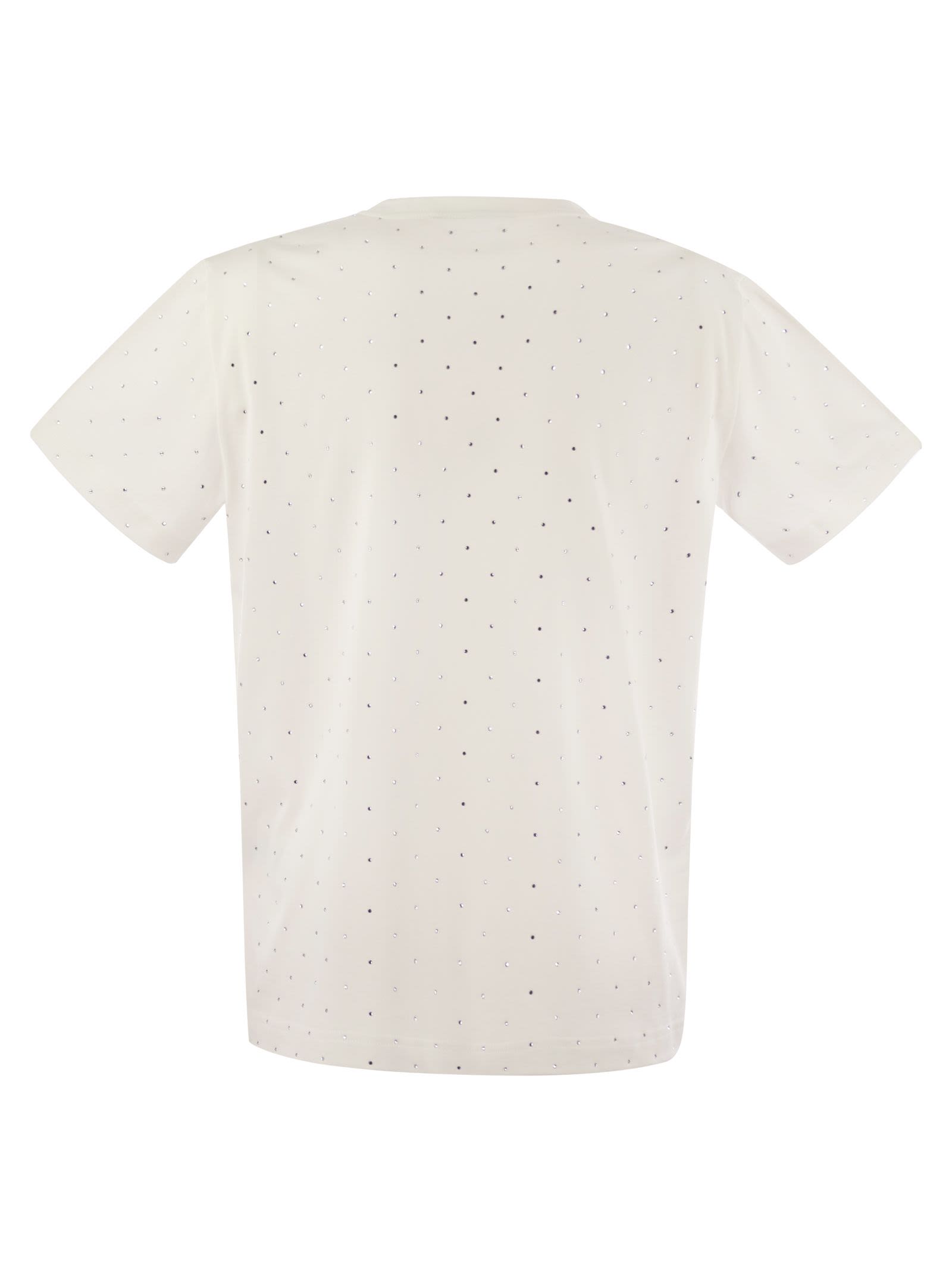 Essentielles T-Shirt mit kurzärztem Baumwolltrikot, das sich von Special überall in Strass-Firmament-Stickament auszeichnet. .