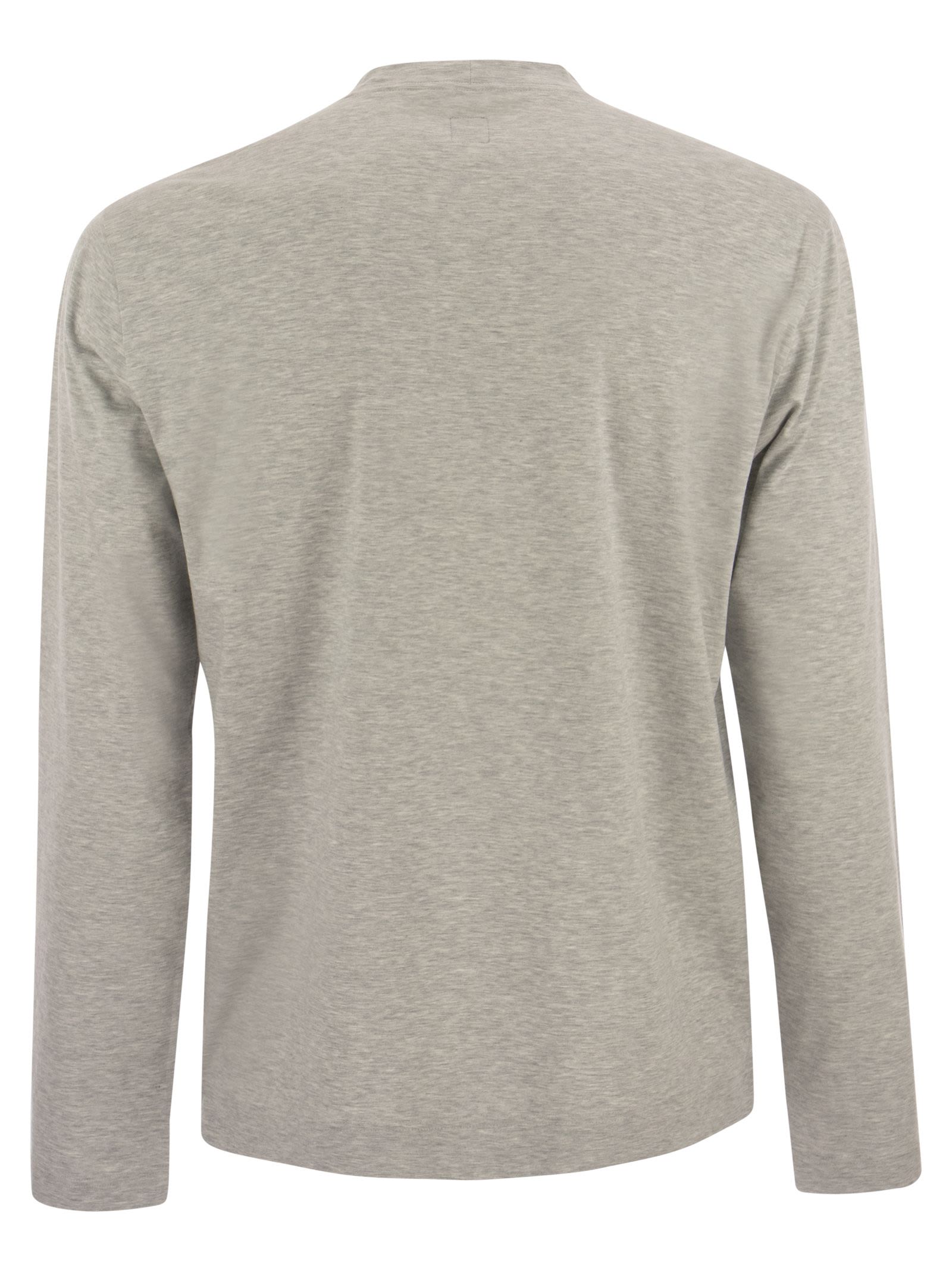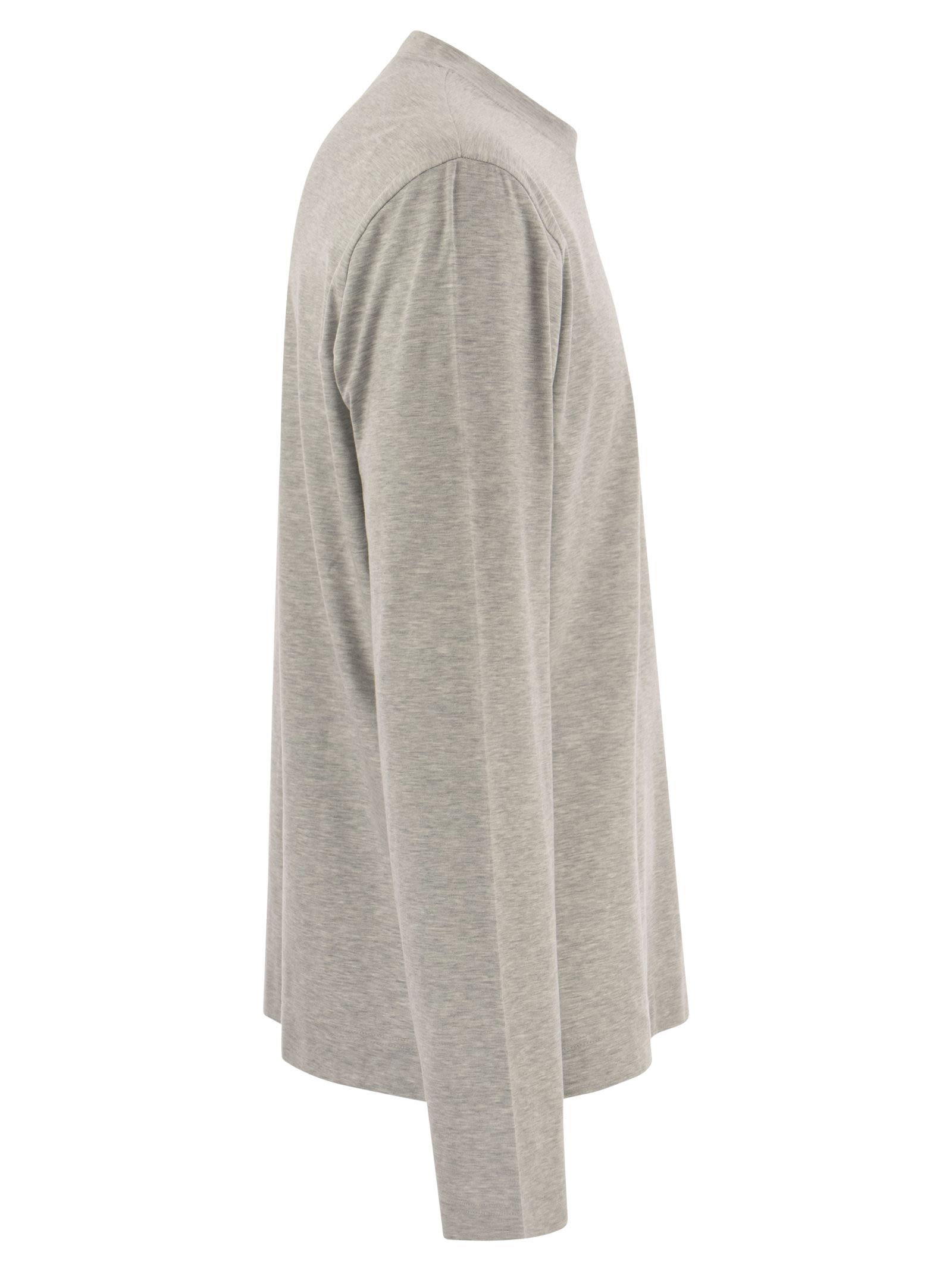 Langarmed Crew-Hals-T-Shirt im Stretch-Baumwolltrikot, weicher an die Berührung. Selbst an den kältesten Tagen in der Saison oder vielleicht während eines langen Abendausflugs am Strand völlig geschützt zu fühlen. Auch in den ungezwungensten Situationen niemals auf Eleganz verzichten. - zeitgenössischer Stil - bequemer Passform - Crew Neck - Langarmdesigner -Designer -ID: 6UI00537 3