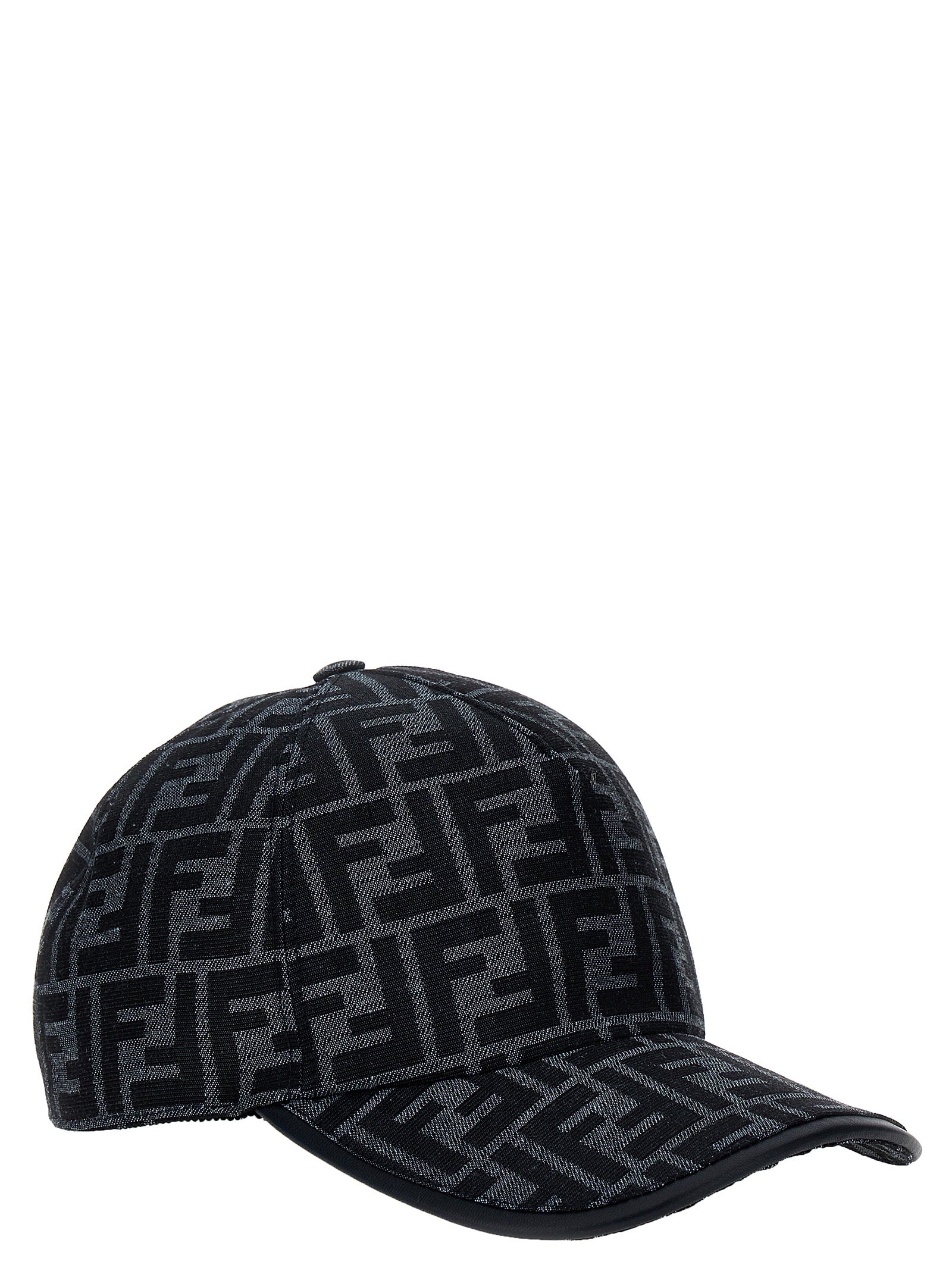 Leinwandkappe mit All-Over-FF-Logo-Muster, Lederdetails, verstellbarer Riemen.