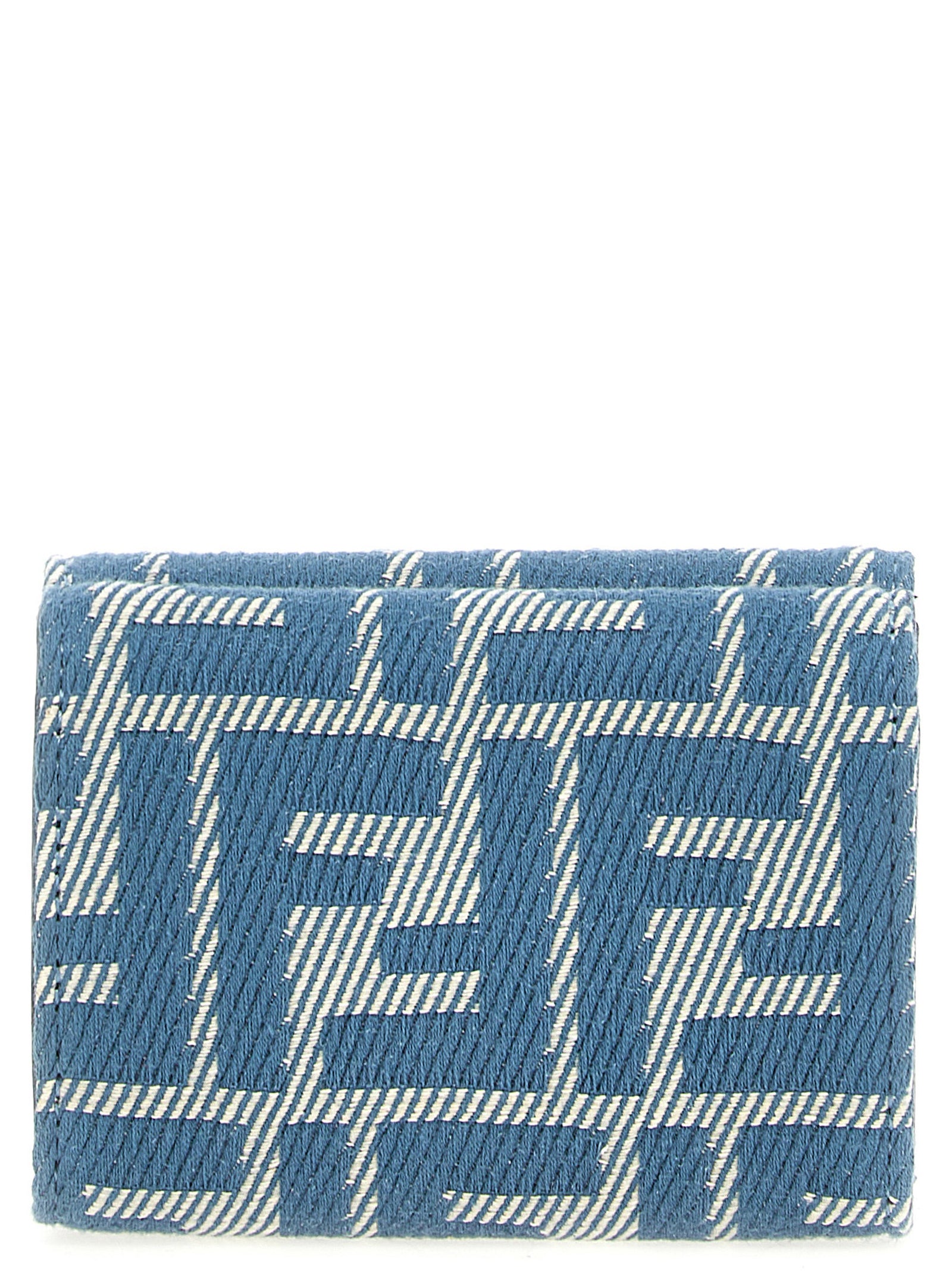 'Micro Triufold Baguette' Brieftasche in FF Jacquard mit Jeanseffekt, Geldbörse mit Klappenverschluss mit Snap -Taste und Metalllogo vorne, Banknotehalter mit Snaptastschließung.