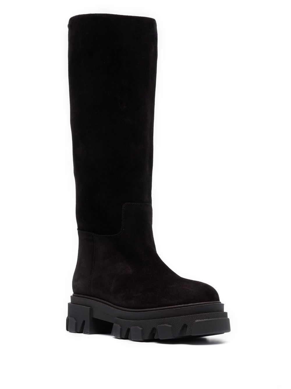 Knielange Wildlederstiefel aus Gieborghini mit schwarzem, Kalbleder, knielangen, Pull-on-Stil, rund Zeh, Pull-tab an der Ferse und der geruchten Gummi-Sohle.