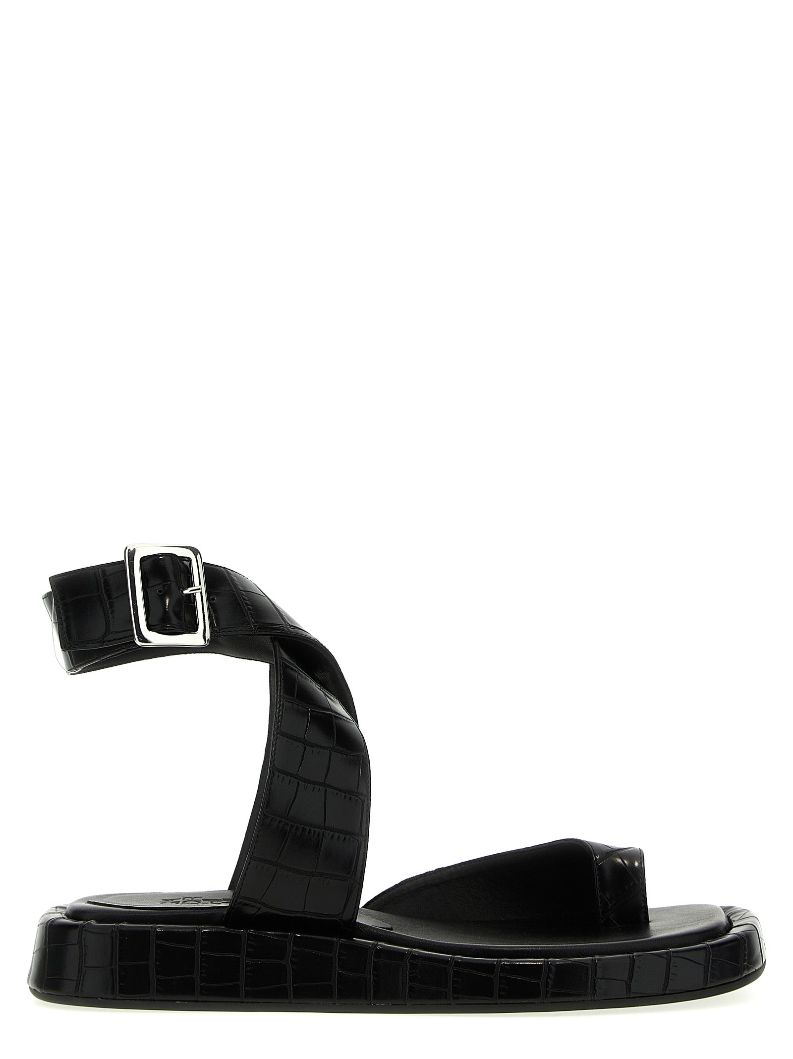'Roxanne' Croc Print Ledersandalen mit Flip-Flops-Stil, Knöchelriemen.