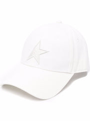 Weiße Baumwollbaseballkappe von Golden Gans mit verstellbarem Passform, bestickten Design, Sternplattendetail und geschwungener Peak.